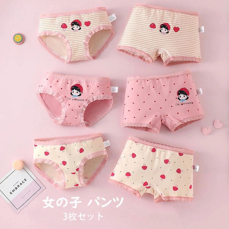 【送料無料】パンツ 女の子 キッズ ベビー ガール 女児 子どもパンツ 3枚セット 子供用 可愛い 下着 インナー きれいめ オシャレ かわいい 綿 柔らか トランクス フ パンツ ボクサー・パンツ 入園 入学 四季通用 選べる2タイプ 2,079 ~