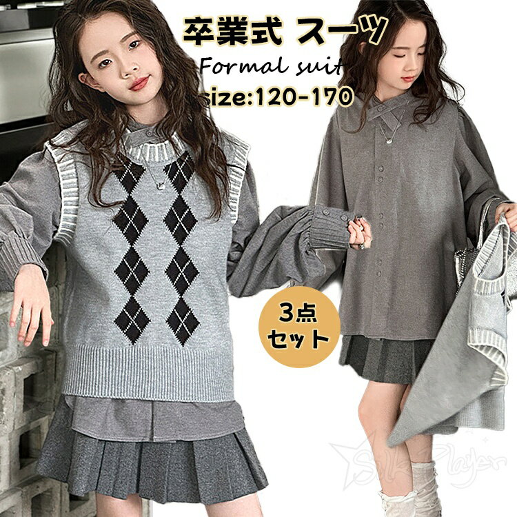 卒業式 女の子 スーツ 入学式 子供服 フォーマル セットアップ パンツスーツ 3点セット ベスト ワイドパンツ 発表会 結婚式 受験 面接 ジュニア 韓国 110 120 130 140 150 160 170 かっこいい おしゃれ 黒 カーキ ワークパンツ 小学校 中学校 キッズ 制服風 記念撮影 7,000 ~