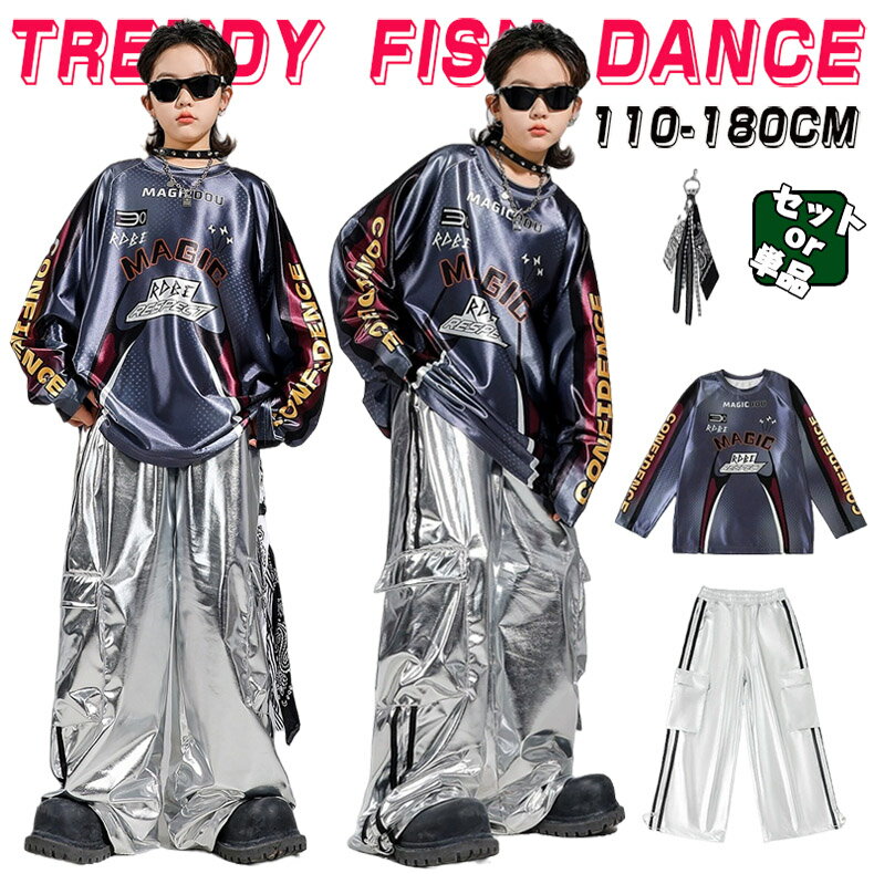 k-pop 衣装 シルバー キッズダンス衣装 ベースボール シャツ セットアップ 男の子 女の子 銀 tシャツ トップス パンツ 男女 キッズダンス ヒップホップ 韓国 ゆったり カッコイイ 練習着 チアダンス チアガール 子供 ダンスウェア ジュニア 発表会 団体服 ステージ衣装 1,780 ~