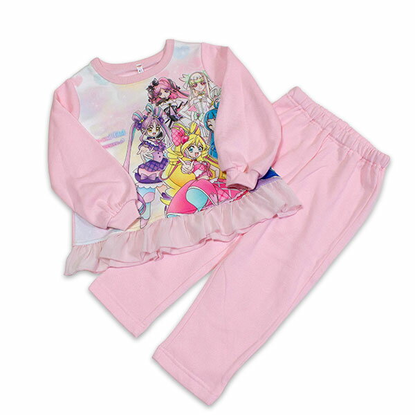 【商品説明】 <蓄光プリントの特徴> 太陽や蛍光灯等の光を吸収することで一定時間発光するプリントのことです。 明るい所では一見普通のプリントですが暗い所では蓄光プリント部分が光って見えます。 あったか裏起毛の光るパジャマになります。 パジャマの裏側は肌にやさしい綿100%になっております。 また洗濯を重ねることにより色鮮やかなプリント部分が色褪せにくく 光り方も長持ちできるよう改善されてます♪ 【素材】本体 表側 ポリエステル65%・綿35% 中糸 ポリエステル100% 裏側 綿100% 前身頃 表側 ポリエステル100% 中糸 ポリエステル100% 裏側 綿100% 別布 ポリエステル100% リブ部分 ポリエステル62%・綿33%・ポリウレタン5% 【商品平置きサイズ】 100cm(身長95〜105cm) 上衣 (着丈:約39cm 身幅:約34cm 袖丈:約36cm) 下衣 (総丈:約56cm 股下:約35cm) 110cm(身長105〜115cm) 上衣 (着丈:約43cm 身幅:約36cm 袖丈:約39cm) 下衣 (総丈:約61cm 股下:約40cm) 120cm(身長115〜125cm) 上衣 (着丈:約47cm 身幅:約38cm 袖丈:約43cm) 下衣 (総丈:約68cm 股下:約45cm) 【発売元】株式会社バンダイ ●光る!裏起毛パジャマ(ゴジュウジャー)はコチラをクリック♪ ●光る!裏起毛パジャマ(仮面ライダーゼッツ)はコチラをクリック♪ ●光る!裏起毛パジャマ(ウルトラマンオメガ)はコチラをクリック♪ ●光る!裏起毛パジャマ(最強王図鑑)はコチラをクリック♪ ●光る!裏起毛パジャマ(キミとアイドルプリキュアA)はコチラをクリック♪ ●光る!裏起毛パジャマ(キミとアイドルプリキュアB)はコチラをクリック♪ ●光る!裏起毛パジャマ(プリキュアアールスターズ)はコチラをクリック♪ キミとアイドルプリキュア パジャマB 光る 裏起毛 長袖パジャマ 光るパジャマ 長袖 ルームウェア 2025-2026年 2,182 ~