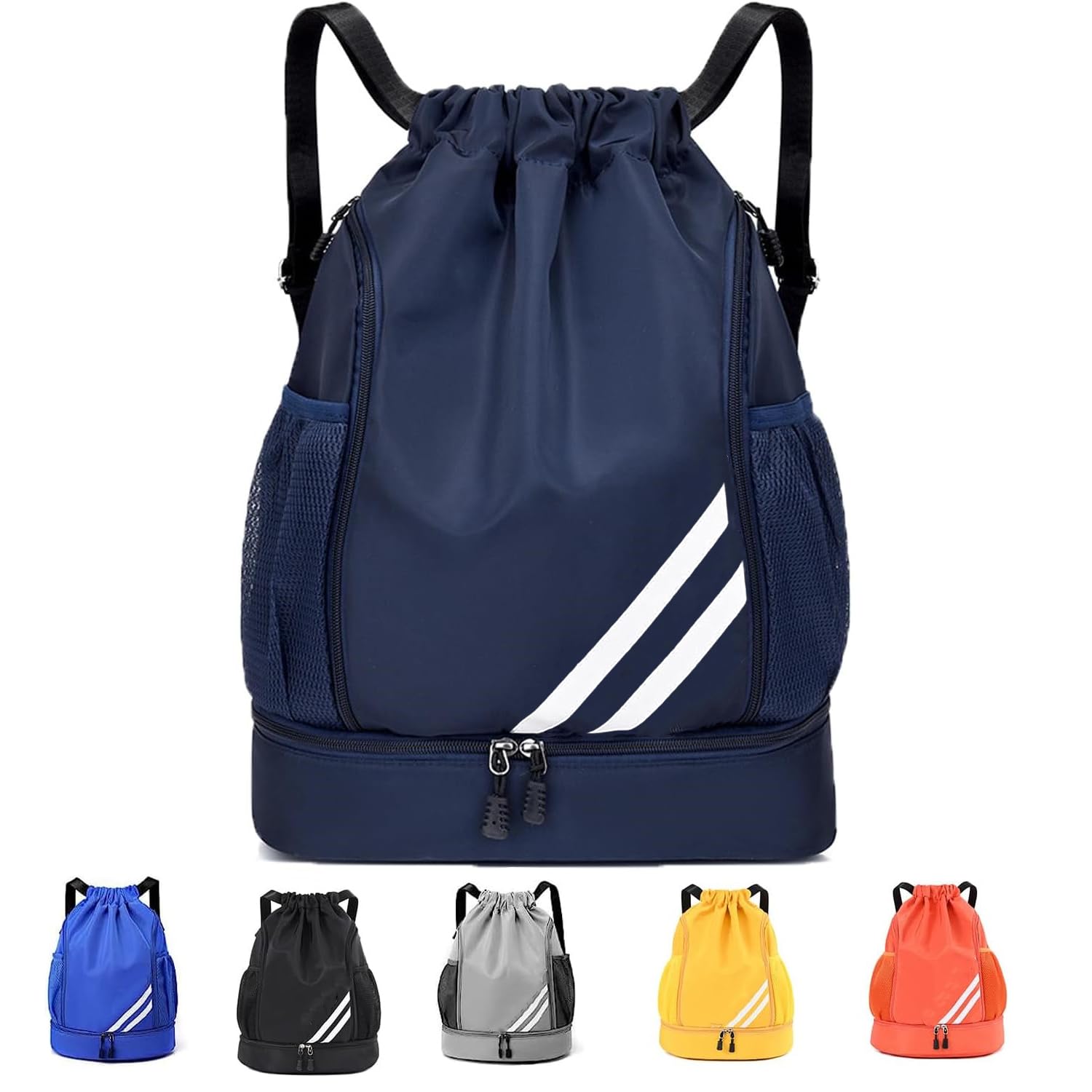 【送料無料】プールバッグ 男の子 スイムバッグ ナップサック ジムサック リュック 水泳 バッグ 大容量 防水 プール バッグ 巾着袋 軽量 乾湿分離 2ルーム多機能 シューズ収納可能 スポーツバッグ ビーチバッグ 大人 女の子 小 色:ネイビー、サイズ:34cm x 42cm x 15cm 3,556 ~
