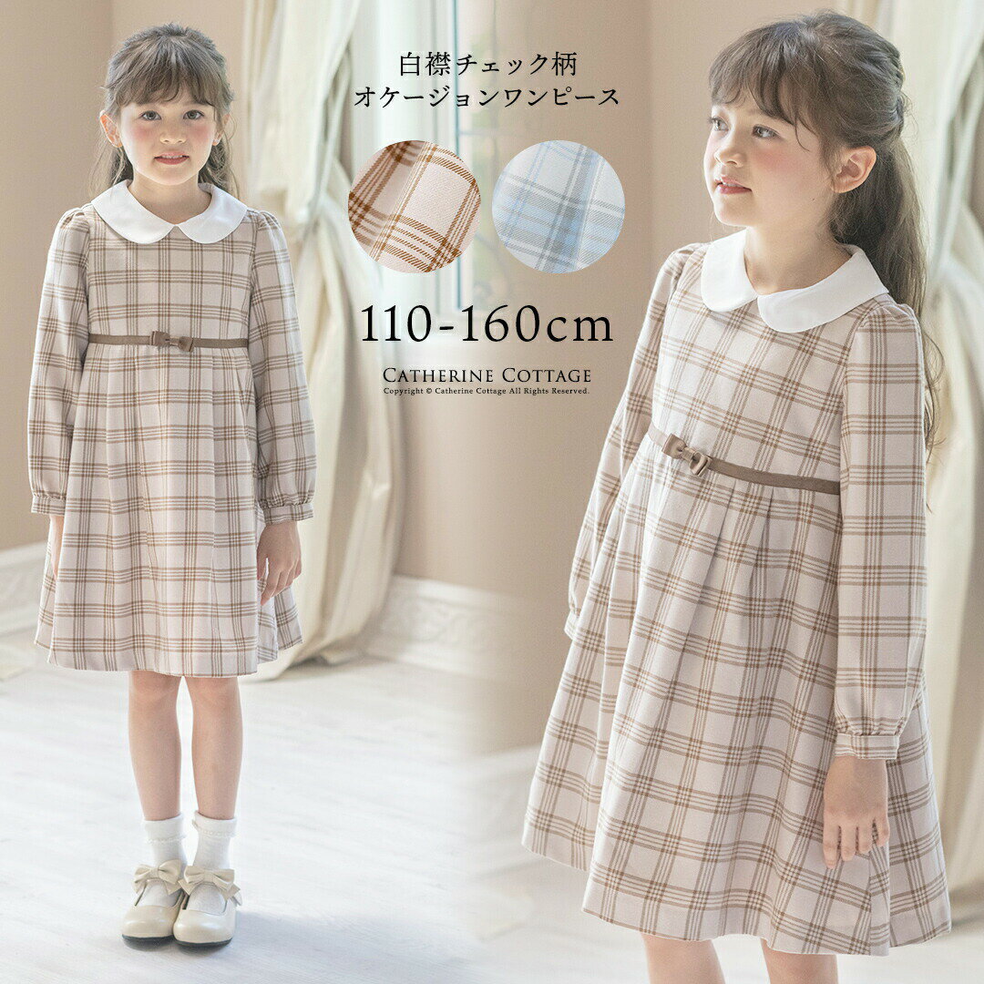 ★2026年3月卒業向け 入荷終了、在庫限りきちんと、かわいい!万能オケージョンワンピース白い丸襟がかわいくきちんと感を演出する、キッズ女の子長袖ワンピース。 上品な印象とトレンド感を兼ね備えたチェック柄で、入学式や卒業式などセレモニーシーンから結婚式や発表会などフォーマル、ちょっとしたお出かけなど、幅広いシーンで活躍するオケージョンワンピースです。 POINT:01:ウエストリボンがキュートなアクセント02:上品なパフスリーブで女の子らしさも満点03:後ろファスナー部分も柄合わせばっちりな丁寧な仕立てが自慢!04:タックを入れたスカートがほのかにふわりと広がって【商品仕様】伸縮性:なし生地の厚み:普通透け感:なしポケット:なし裏地:あり[型番:TK1129]■カラー:ベージュ[BEG]、サックス[SAX]詳細は画像をご覧ください※サイズ表の数値は、メーカー仕様書から引用した、商品そのものの仕上がり寸法です。 実際のサイズとは誤差が出る場合がございますので、参考サイズとしてご覧ください。 また、サイズ選びの際はゆとり分をご考慮ください。 ※( )で表記されている数字はヌードサイズです。 ヌードサイズとは衣服を身につけない身体のサイズです。 お客様ご自身の身体サイズと比較してお選びください。 ■素材: 地:ポリエステル65%、レーヨン35%襟、裏地:ポリエステル100% ■お手入: 必ずタグをご確認ください >>商品のお取り扱い方法 ■原産国: 中国白襟チェック柄オケージョンワンピース/キャサリンコテージ(Catherine Cottage)ベージュ[BEG]サックス[SAX]画面上と実物では、多少色具合が異なって見える場合がございます。