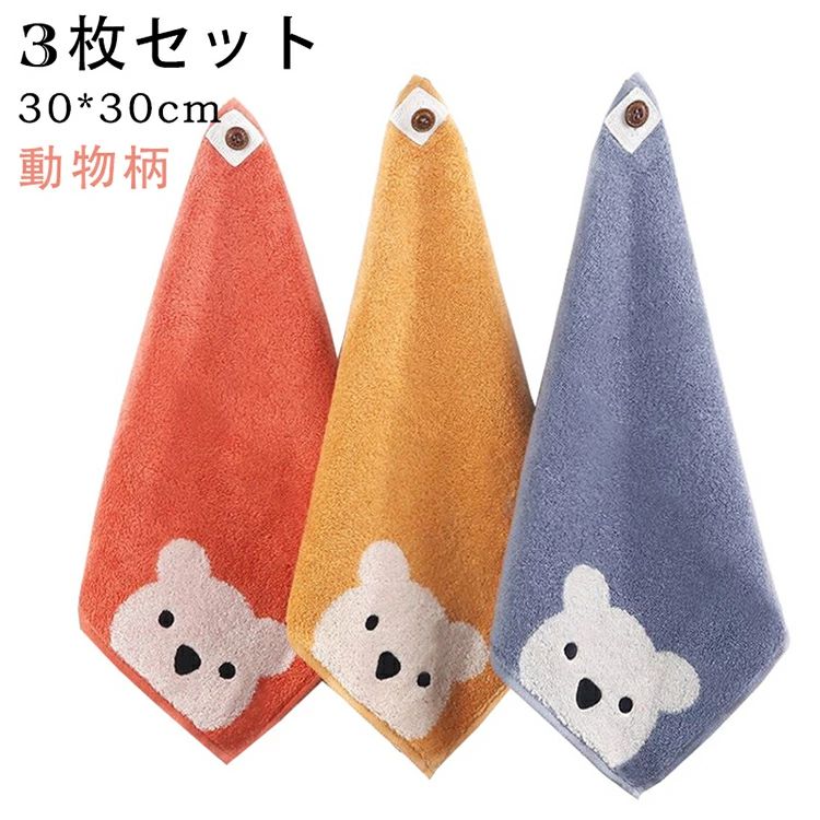 幼稚園 熊 30*30cm 子供 無地 厚手 かわいい 子どもタオル キッチンタオル くまさん ストライプ セット 入園入学準備 ループ付き 3枚セット イエロー&オレンジ&サックスブルー 保育園 入園準備 ハンドタオル ギフト 2,550 ~