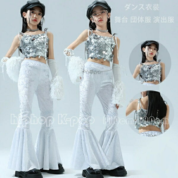 キッズ ダンス衣装 女の子 おしゃれ スパンコール キャミソール キッズ ダンス 新品 白いラッパズボン 舞台 団体服 演出服 hiphop K-pop ダンスウェア ヒップホップ ステージ衣装 jazz 原宿系 かわいい ファッション トップス ボトムス 110 120 130 140 150 160 170 180 1,750 ~