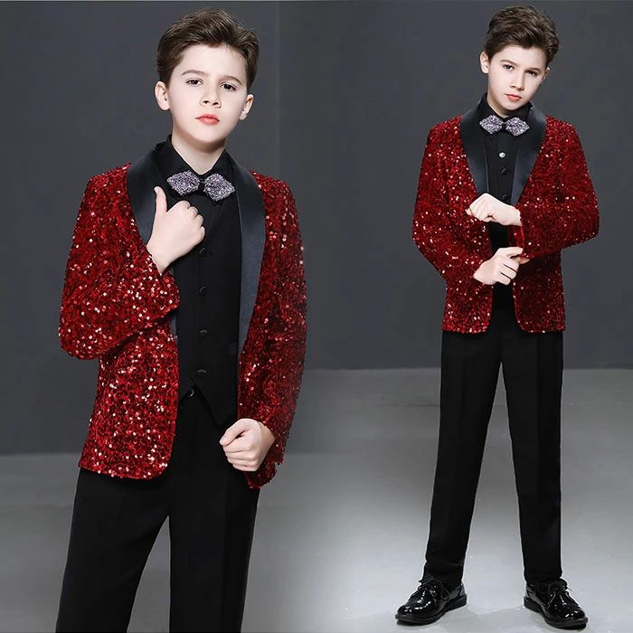 キッズ服 子供スーツ 3点セット 4点セット 5点セット 男の子 ジャケット ベスト シャツ パンツ 蝶ネクタイ ジュニア服 きらきら スパンコール 舞台衣装 ステージ衣装 ピアノ 演奏会 モデル イベント 宴会 演出服 結婚式 文化祭 紳士服 礼服 派手 パーティー 司会者 おしゃれ 5,980 ~