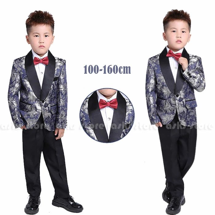 キッズ スーツ 子ども 男の子 上下セット ジャケット パンツ シャツ 蝶ネクタイ 子供服 ジャガード 花柄 発表会 舞台衣装 学園祭 卒業式 ダンス衣装 礼服 紳士服 イベント ピアノ 演奏会 演出服 パーティー 結婚式 花童 おしゃれ 100cm 110cm 120cm 130cm 140cm 150cm 160cm 6,880 ~