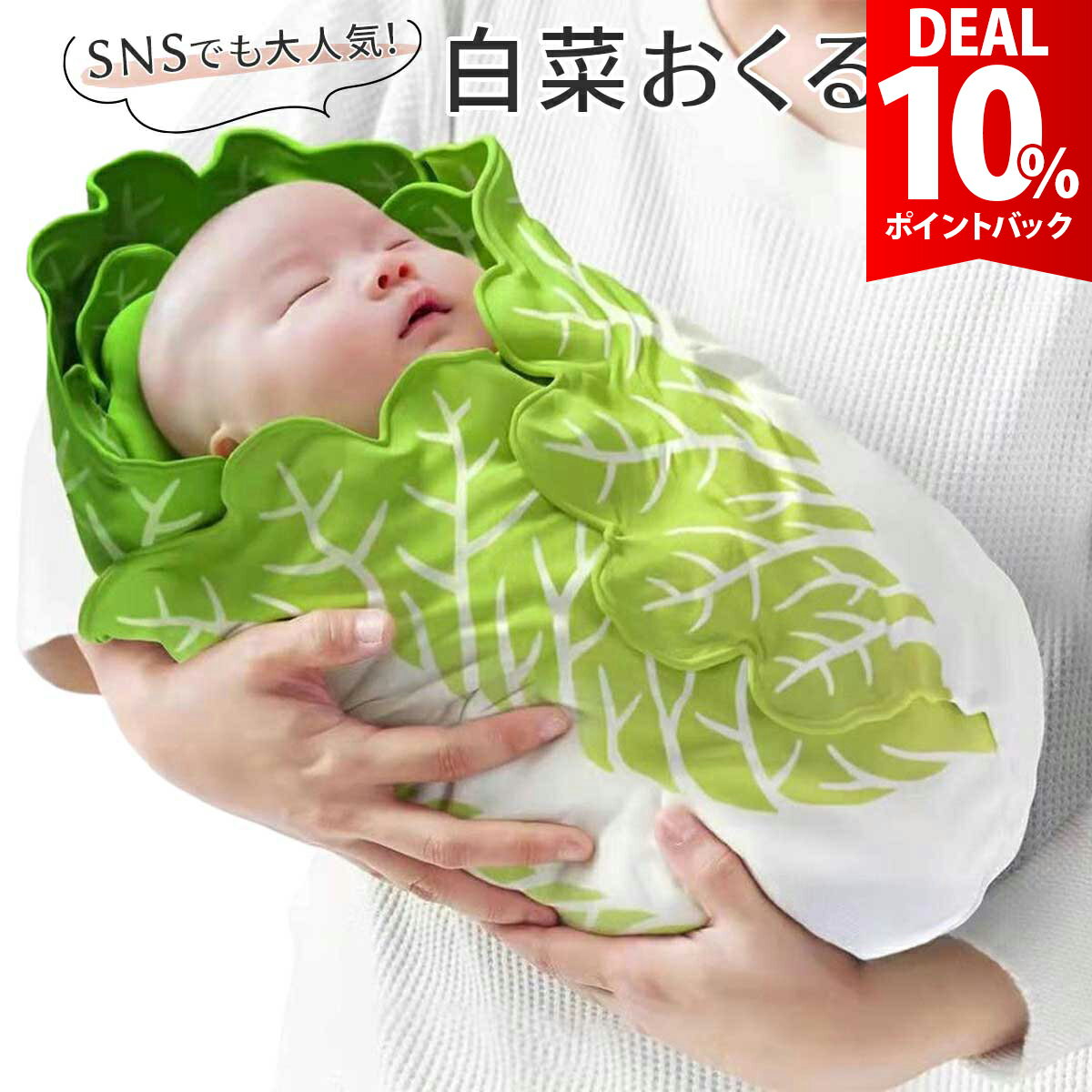 おくるみ 白菜 ベビー ブランケット 野菜 面白い 赤ちゃん 寝相アート お昼寝アート ニューボーンフォト 新生児 毛布 出産祝い プレゼント 帽子付 【 可愛いデザイン 】SNSでも大人気!ニューボーンフォトの撮影にぴったりな白菜のおくるみと帽子セットです。 【 ふわふわで手触り 】薄手でふわふわのフランネル素材で、赤ちゃんもすやすや気持ちよく寝れる心地よい肌触りです。 【 水洗いOK 】水洗いが可能です。 汚れても、さっと洗えて清潔にご使用いただけます。 【 長く使える 】新生児期のおくるみとして使うのはもちろん、ベビーカーの日よけカバー、ブランケットなど、マルチにご使用いただけます。 【 プレゼントや記念日に 】寝相アート・お昼寝アートなど記念撮影に大活躍♪ユニークアイテムが好きな方への出産祝い、プレゼントにも喜ばれます。 ご購入から30日間はメーカー保証付きです。 メーカー希望小売価格はメーカーサイトに基づいて掲載していますe0181 【 可愛いデザイン 】SNSでも大人気!ニューボーンフォトの撮影にぴったりな白菜のおくるみと帽子セットです。 【 ふわふわで手触り 】薄手でふわふわのフランネル素材で、赤ちゃんもすやすや気持ちよく寝れる心地よい肌触りです。 【 水洗いOK 】水洗いが可能です。 汚れても、さっと洗えて清潔にご使用いただけます。 【 長く使える 】新生児期のおくるみとして使うのはもちろん、ベビーカーの日よけカバー、ブランケットなど、マルチにご使用いただけます。 【 プレゼントや記念日に 】寝相アート・お昼寝アートなど記念撮影に大活躍♪ユニークアイテムが好きな方への出産祝い、プレゼントにも喜ばれます。 ■セット内容 帽子、おくるみ ■サイズ(約) 84cm×84cm ■素材 ポリエステル ■洗濯可 洗濯機で洗えます。 ※洗濯ネットを使用してください。 ※乾燥機は使えません。 ■モデル情報 りとくん(4カ月) 身長65cm 体重7000g himaちゃん(5カ月) 身長65cm 体重7kg ※商品写真はできる限り実物の色に近づけるよう調整しておりますが、お客様のお使いのモニター設定、お部屋の照明等により実際の商品と色味が異なる場合がございます。 恐れ入りますが色味が理由によるご返品はお受けしておりませんので、予めご了承ください。 ご注文前にご確認下さい ●よくあるご質問● 【DEAL 10%還元】おくるみ 白菜 面白い ベビー ブランケット 白菜のおくるみ 野菜 赤ちゃん 寝相アート 新生児 お昼寝アート ニューボーンフォト 毛布 出産祝い プレゼント 帽子付 1,980 ~