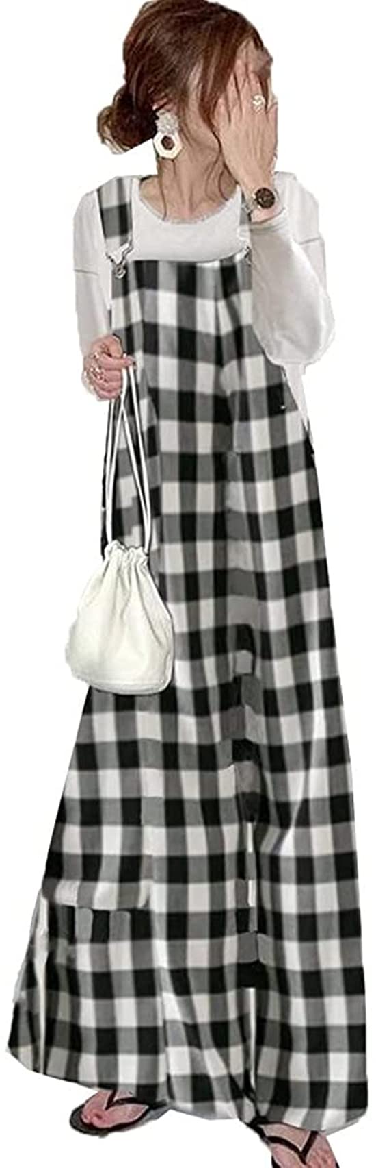 【送料無料】[DYIOPMFGZ] サロペット オールインワン オーバーオール レディース ワイドパンツ ジャンパー パンツ ズボン ロングパンツ サスペンダー スカート サロペットパンツ ワンピース つり カジュアル チェック柄 ゆったり ロン 色:ブラック1、サイズ:Free Size 3,819 ~