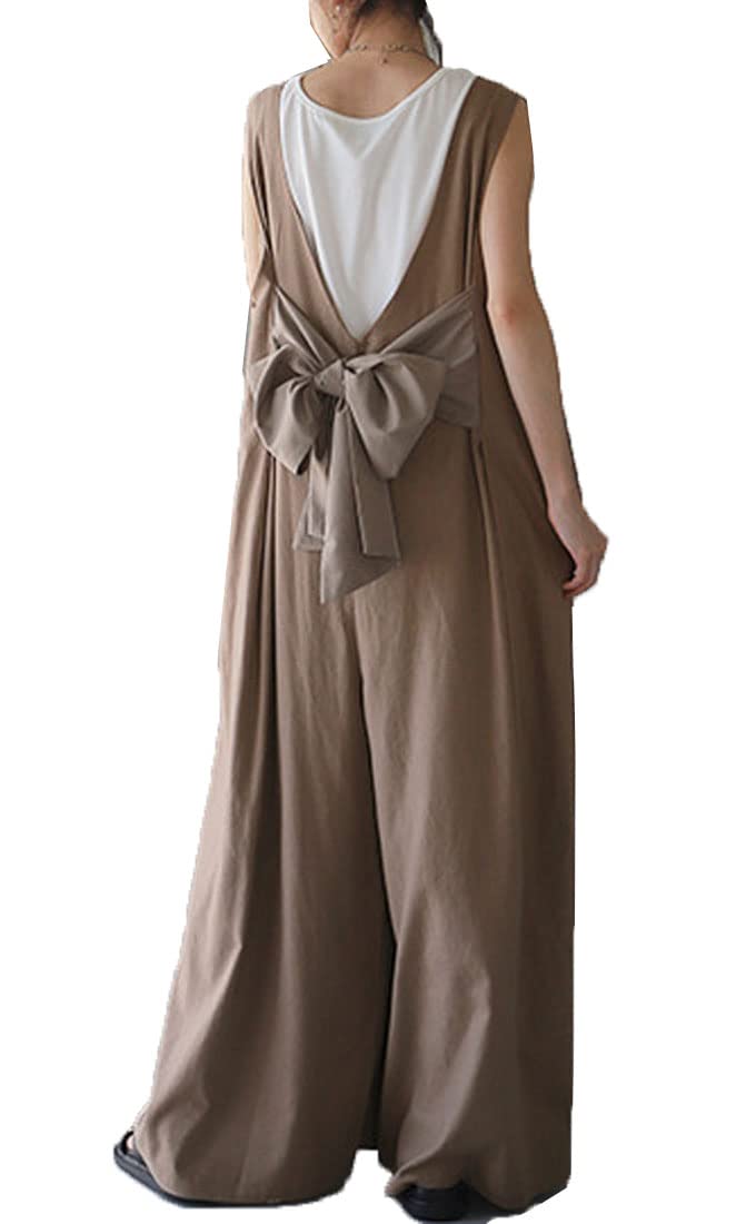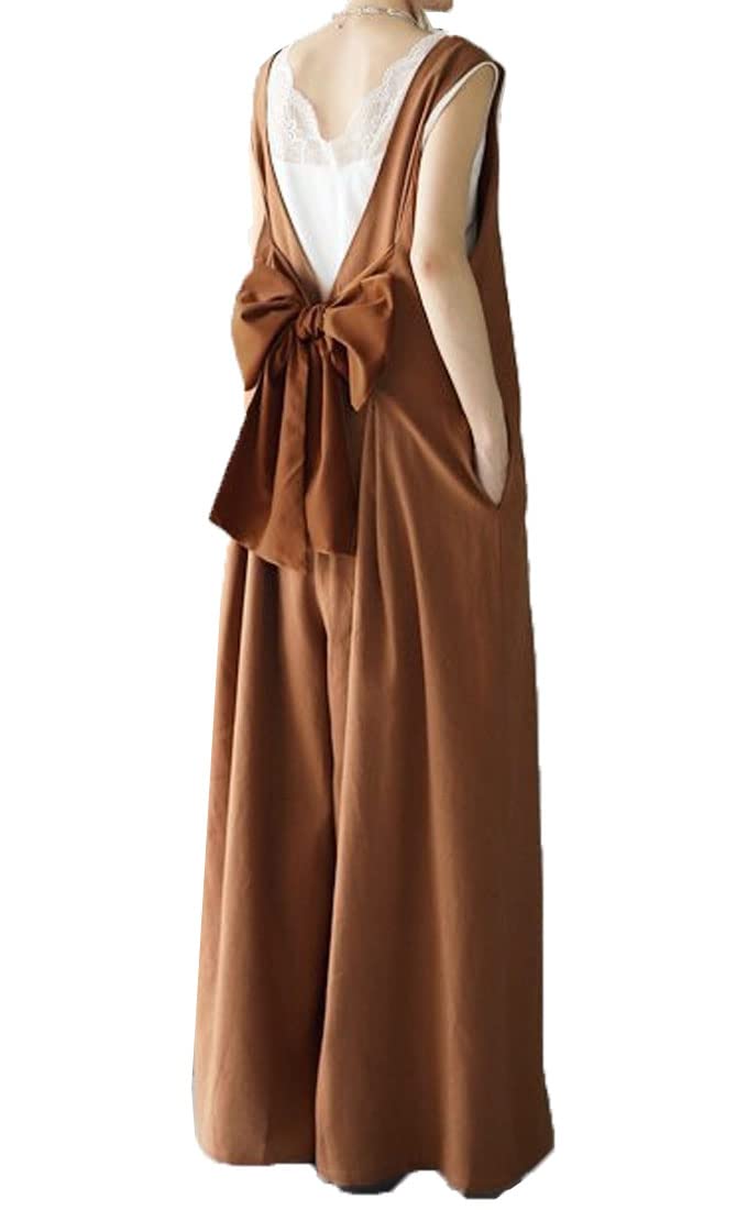 【送料無料】[DYIOPMFGZ] オールインワン レディース サロペット ワイドパンツ オーバーオール ジャンパー パンツ ロングパンツ ズボン サロペットパンツ サスペンダー ガウチョパンツ パンツドレス つり カジュアル ロング バックリボ 色:コーヒー、サイズ:Free Size 3,880 ~