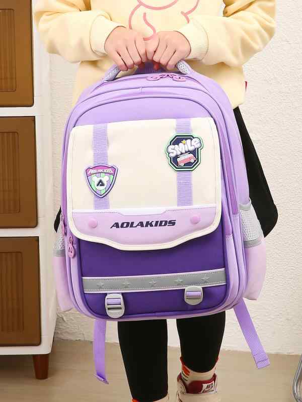 [{"・対象: 男女兼用","・対象年齢: 小学校2?6年生","・素材: オックスフォード布、裏地ナイロン","・機能: 耐摩耗性","・スタイル: モダン、クール","・柄: 無地","・デザイン: プリント、配色","・カラー: ピンク、ブラック、ブルー、パープル"}] リュック キッズ 男女兼用 子供 学生 大容量 撥水 ナイロン 通学 遠足 旅行 塾 春夏 6,390 ~