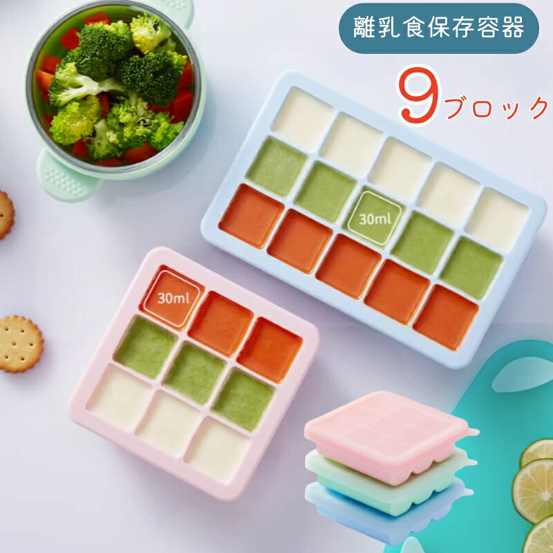【マラソン★P10倍+クーポン】 蓋付き 離乳食保存 シリコン 9ブロック 小分け トレー ブルー ピンク グリーン 洗いやすい 取りやすい 密閉保存容器 フタ付き 冷凍 トレー シリコン製氷皿 製氷皿 マタニティ キッチン用品 小分けトレー 氷型 かわいい やわらかい 便利 1,848 ~