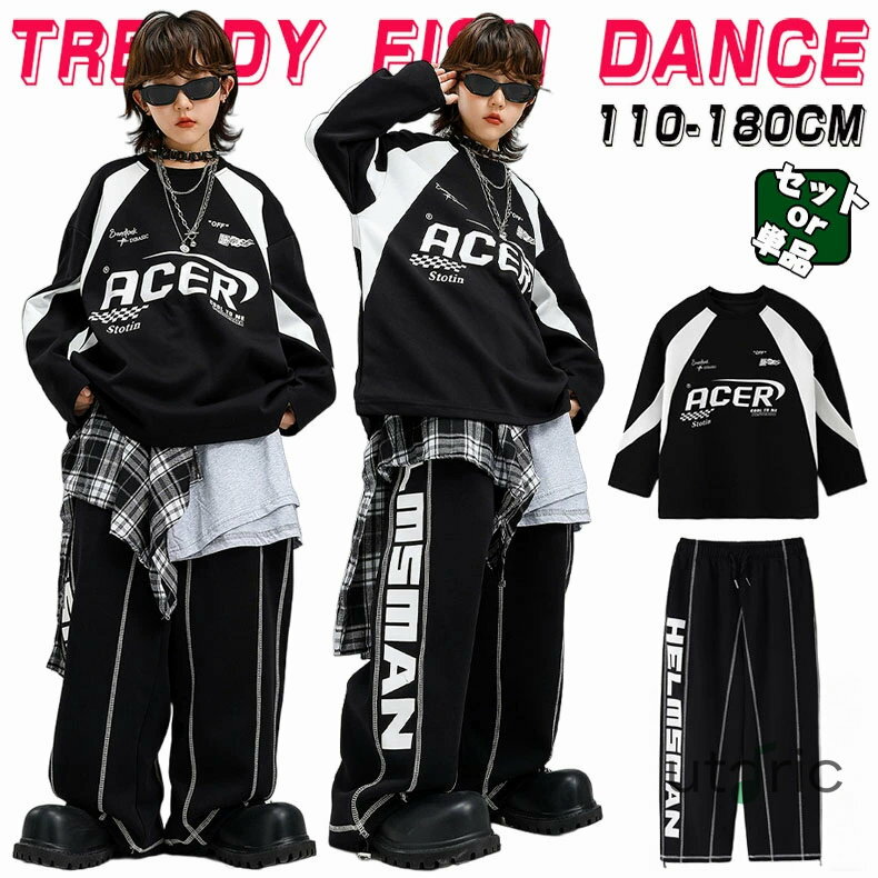 キッズ 子供ダンス衣装 ヒップホップ スポーツウェア 女の子 男の子 セットアップ ジャズダンス ストリート ユニセックス HIPHOP JAZZ ダンスウエア 長袖 トップス ロングパンツ ホワイト ブラック ゆったり おしゃれ 原宿系 発表会 演出服 練習服 団体服 舞台服 110-180cm 3,155 ~
