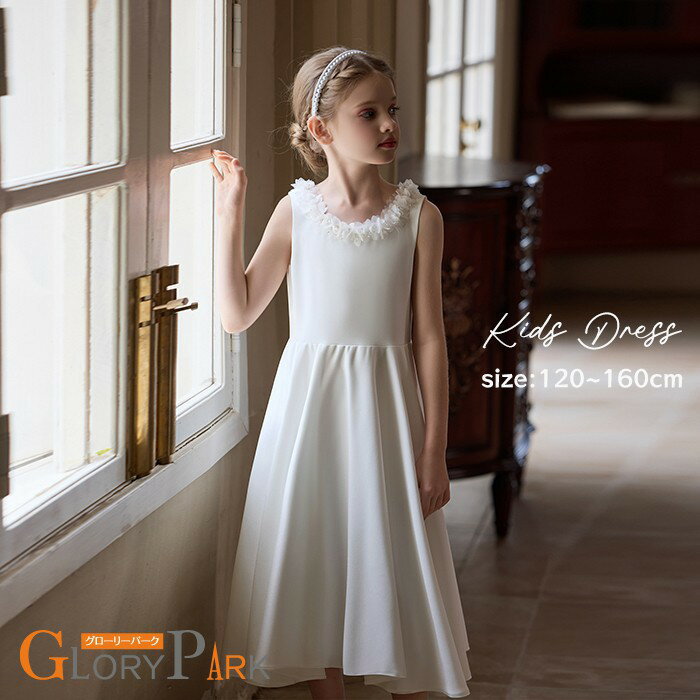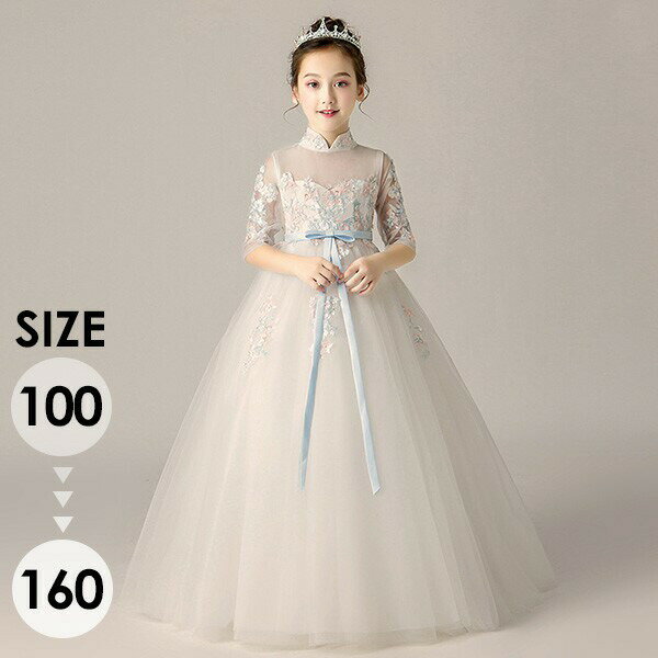 ホワイト ロング ジュエル 子供ドレス 幅広ウエストの花飾付きスカートは贅沢5枚重ねボリュームゴージャス チュチュ パニエ こどもドレス 90 100 120 13 0140cm 結婚式 子供ロングドレス フラワーガール ドレス 発表会 演奏会 ピアノ 子供ドレス 5,800 ~