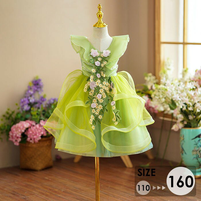 ピアノ発表会 ドレス ロング丈 ファスナー ワンピース ラウンド 半袖 お姫様 グリーン 着やせ 上品 エレガント 女の子 フォーマル 結婚式 子供 フォーマル キッズドレス 110/120/130/140/150/160 da912zezed4グローリーパーク 16,880 ~
