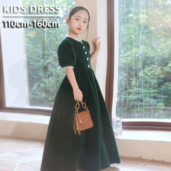 ピアノ 発表会 ドレス ロング丈 ファスナー 袖有り 子供 ワンピース お姫様 グリーン 着やせ 上品 エレガント 女の子 フォーマル 結婚式 フォーマル キッズドレス ロングドレス 160 発表会 dg576zezey7/代引不可 12,880 ~