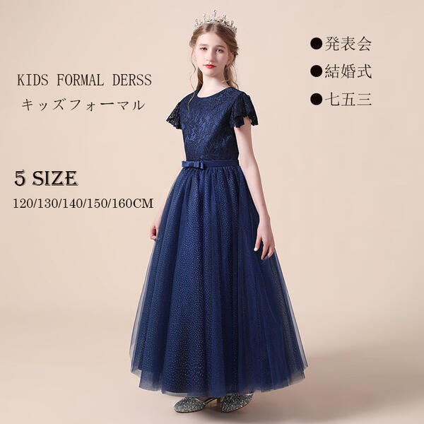 キッズドレス ピアノ 半袖 演奏会 ネイビー キッズフォーマル 子供ドレス発表会 パーティードレス フォーマル 120/130/140/150/160 dt497c0c0d4 12,850 ~