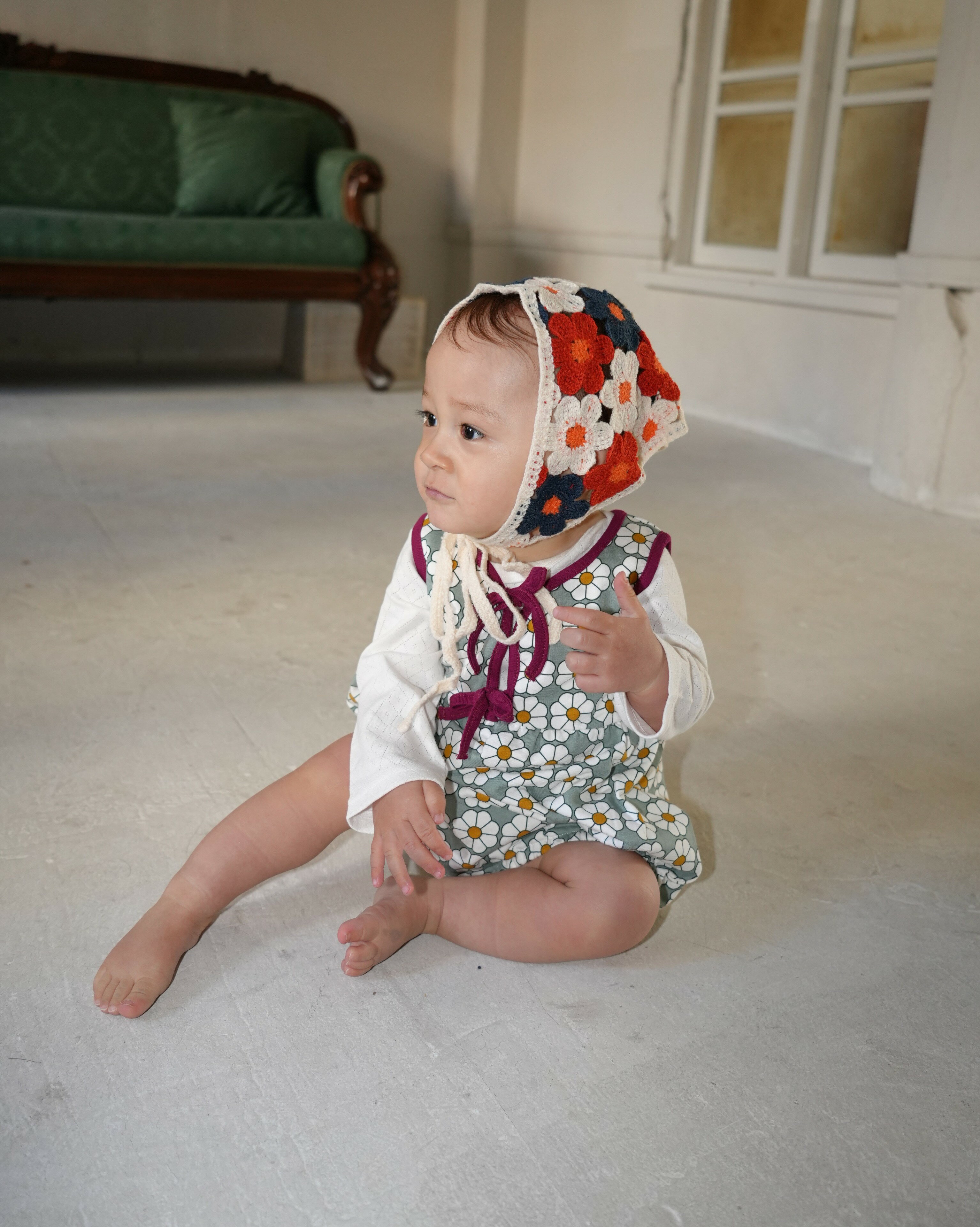-DESCRIPTION- ふんわりブルマシルエットが可愛い裏毛生地のサロペット 程よい厚みで柔らかく、着心地もよいです◎ 股下ホック開きでおむつ替えも簡単です。 コハナオリジナルのレトロデイジー柄がおしゃれ リボン結びがポイントで、インナーを変えて通年使える便利なアイテムです 普段着はもちろん、外遊び着にも最適です。 きょうだい、姉妹でリンクコーデもできます 性別問わずご着用いただけるデザインになっています ※フロントのリボンは固定していません。 お好きなように結んでください♪ MATERIAL 本体 綿60% ポリエステル40% 別布 綿100% SIZE サイズ 着丈 身幅 足ゴム上がり 70 40.5 27 23 80 42.5 28 24 COLOR GREEN/BROWN country of origin バングラデシュ 【楽天スーパーSALEポイント最大47倍】サロペット ベビー ブルマ ベビー服 かぼちゃパンツ 女の子 レトロ デイジー 柄 サロペット コットン 70 80 コハナベビー 4,690 ~