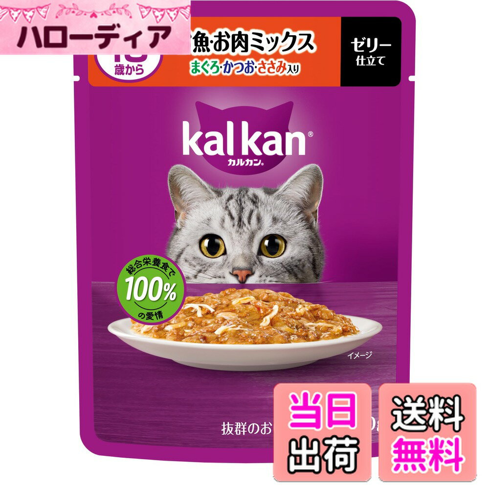 商品情報商品の説明商品紹介 抜群のおいしさに進化!厳選されたまぐろ・かつお・ささみをカルカン特製だしで煮込み、ジューシーなゼリー仕立てにしました。 15歳以上の猫に必要な栄養素がバランスよく含まれた総合栄養食です。 食べやすい小さめフレーク。 使用上の注意 体重2kg:3.3袋、3kg:4.4袋、4kg:5.4袋、5kg:6.3袋、6kg:7.2袋、7kg:8袋 本製品には、成猫に必要な栄養がバランスよく含まれていますので、ドライフードの代わりに毎日のお食事として使用できます。 1日の食事量は表を目安に、愛猫の運動量に合わせて与える量を加減してください。 1日の食事量を2回程度に分けて与えてください。 常に清潔で新鮮な飲み水をご用意ください。 本製品を初めて与えるときは、今までの食事に少量混ぜ、1週間程度で徐々に増量しながら切り替えてください。 原材料・成分 ●原材料:肉類(チキン、ビーフ、ささみ等)、魚介類(かつお、さば、まぐろエキス等)、植物性油脂、穀類、調味料(アミノ酸等)、ビタミン類(B1、B2、B6、B12、C、E、K、コリン、ナイアシン、パントテン酸、ビオチン、葉酸)、ミネラル類(Ca、Cl、Cu、Fe、I、K、Mg、Mn、Na、Zn)、アミノ酸類(タウリン)、増粘多糖類、ポリリン酸Na、EDTA-Na、発色剤(亜硝酸Na)、●成分:タンパク質:8%以上、脂質:1%以上、粗繊維:0.5%以下、灰分:3%以下、水分:88%以下、●代謝エネルギー:39kcal/1袋 使用方法 体重2kg:3.3袋、3kg:4.4袋、4kg:5.4袋、5kg:6.3袋、6kg:7.2袋、7kg:8袋 本製品には、成猫に必要な栄養がバランスよく含まれていますので、ドライフードの代わりに毎日のお食事として使用できます。 1日の食事量は表を目安に、愛猫の運動量に合わせて与える量を加減してください。 1日の食事量を2回程度に分けて与えてください。 常に清潔で新鮮な飲み水をご用意ください。 本製品を初めて与えるときは、今までの食事に少量混ぜ、1週間程度で徐々に増量しながら切り替えてください。 主な仕様 カルカンパウチは愛猫が毎日食べることを考えたウェットフードです。 栄養バランスご飯の総合栄養食(※)で、おいしさと栄養の厳しいテストに合格しています。 20年ぶりの大リニューアルで、抜群の美味しさに進化しました!日本の猫の好みを研究し、初の『うまみレシピ』を設計しました!『うまみレシピ』とは、うまみが凝縮されたゼリーに具材をギュッと混ぜ込んだこだわりのレシピ。 抜群の味・食感・匂いで愛猫が喜びます。 (※ペットフード公正取引協議会が定める愛猫の健康維持に必要な栄養素が全てバランスよく設計されたフードです) 【送料無料】15歳コア 色:2)お魚・お肉ミックス、サイズ:60g×12袋 2,756 ~