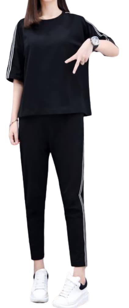 【送料無料】[Icyrain] 部屋着 セットアップ レディース スウェット 上下 ルームウェア 夏服 ショートパンツ ハーフレディース スポーツ 温泉 可愛い ゆったり おしやれ 色:02黒、サイズ:L 3,796 ~
