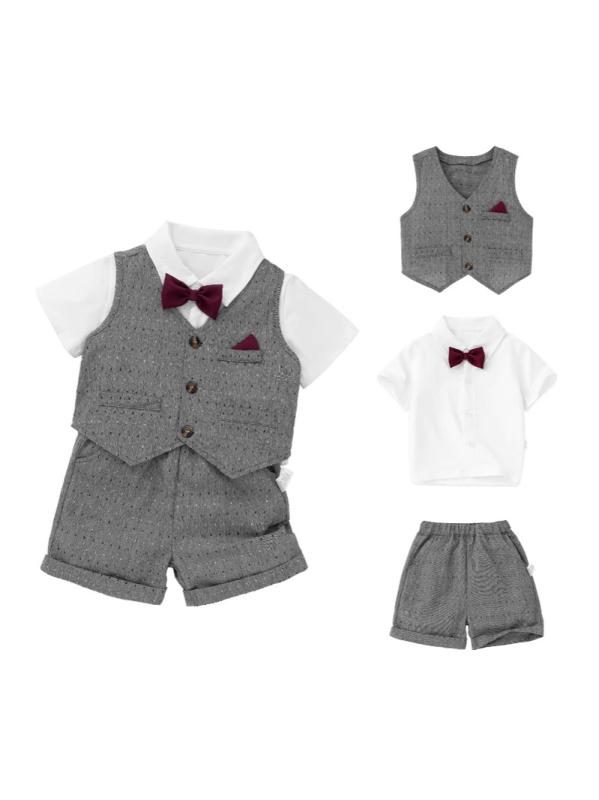 ・カテゴリ: 子供服セット・対象: 男の子・スタイル: ブリティッシュ・セット内容: パンツセット・セット点数: 3点・対象年齢: 1〜3歳・袖丈: 半袖・パンツ丈: ショートパンツ・生地加工: 柔軟加工・厚さ: 薄手・主な素材: 綿60%・開閉タイプ: プルオーバー・サイズ展開: 73cm, 80cm, 90cm, 100cm, 110cm