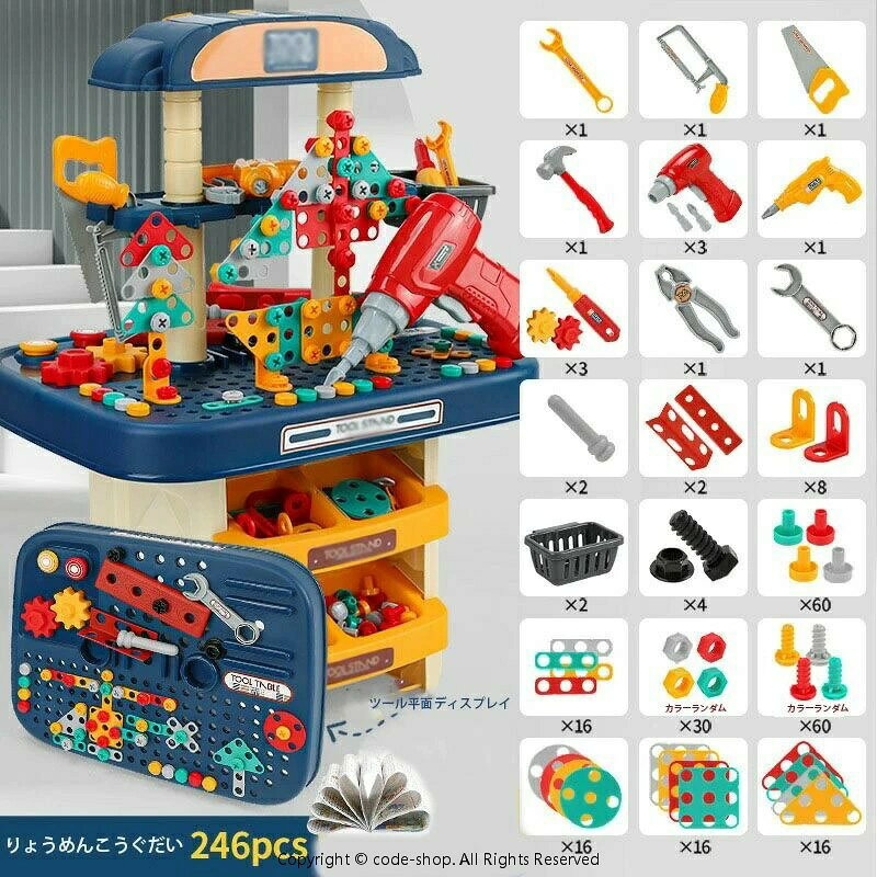 おもちゃ工具セット電動ドライバー全246点セット男の子女の子知育大工さんごっこ遊びなりきり|子供幼児おままごと収納知育玩具収納プレゼントギフト誕生日クリスマス3歳4歳5歳6歳小学生