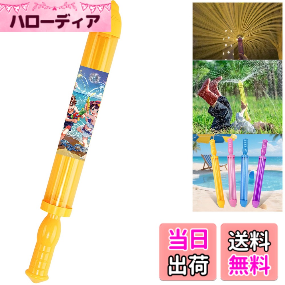 商品情報商品の説明主な仕様 【動画映えバッチリ!SNSで大話題】水鉄砲を空に向けて撃つと、頭の上でパッと水が広がって、まるでお花火が打ち上がったみたいに。 その一瞬をスローモーションで撮れば、キラキラ幻想的な水のシャワーにきっとみとれちゃう。 【最も優れたモノをお客様へ】10年のおもちゃ開発経験を持つ優良工場で製造。 5社以上の工場からのサンプルを厳選し、クォリティーと耐久性の上位にあたる水てっぽうを採用。 【使い方簡単】水を吸う!空に向けて回しながら撃つ!それだけで楽しめる。 ビーチもアウトドアお風呂でもプールでも使用できる。 【★他社とここが違う(1)!凄い吸水力で水をチャージ、暑さを弾き飛ばせ】市販(全長わずか27cm 容量約120ml )の花火水鉄砲を拡張版35cmに改良され、1本当たり約250mlの保有水量、水掛け遊びを更にエキサイティングに昇華させる!【★他社とここが違う(2)!全体は新素材を採用】市販の花火用水鉄砲のほとんどはリサイクルプラスチックで作られており、臭いがするだけでなく、質感も悪い。 大事な子どものおもちゃなので、すべて透明度の高い新品プラスチックで製造され、リサイクルプラスチックは断然使用しない。 ※【お客様の声を大切にします】商品の発送前に検品を一つ一つ丁寧に実施したうえで発送を行っておりますが、たまに検品時の見落としがございます。 商品の品質には万全を期しておりますが、万が一破損や不具合があった場合はお手数をお掛けしますが、まずは「注文履歴」>「出品者に問い合わせる」まで直接ご連絡下さいませ。 お客様にご満足いただけるよう24h以内必ず最善を尽くしたいです。 勝手に悪い評価をお控えくださいますようお願いします。 何卒ご理解賜りますようお願い申し上げます (*´∀`)♪ 【送料無料】TattiOut 水鉄砲 改良拡張版 大容量 SNSで大話題 ウォーターガン 水でっぽう 花火 花 ウォーターフラワー みずでっぽう 水遊び プール ビーチ お風呂 おもちゃ 子供 キッズ 遊び道具 ピストン式 推奨年齢: 6+ 色:(2本)黄色+パープル 2,736 ~