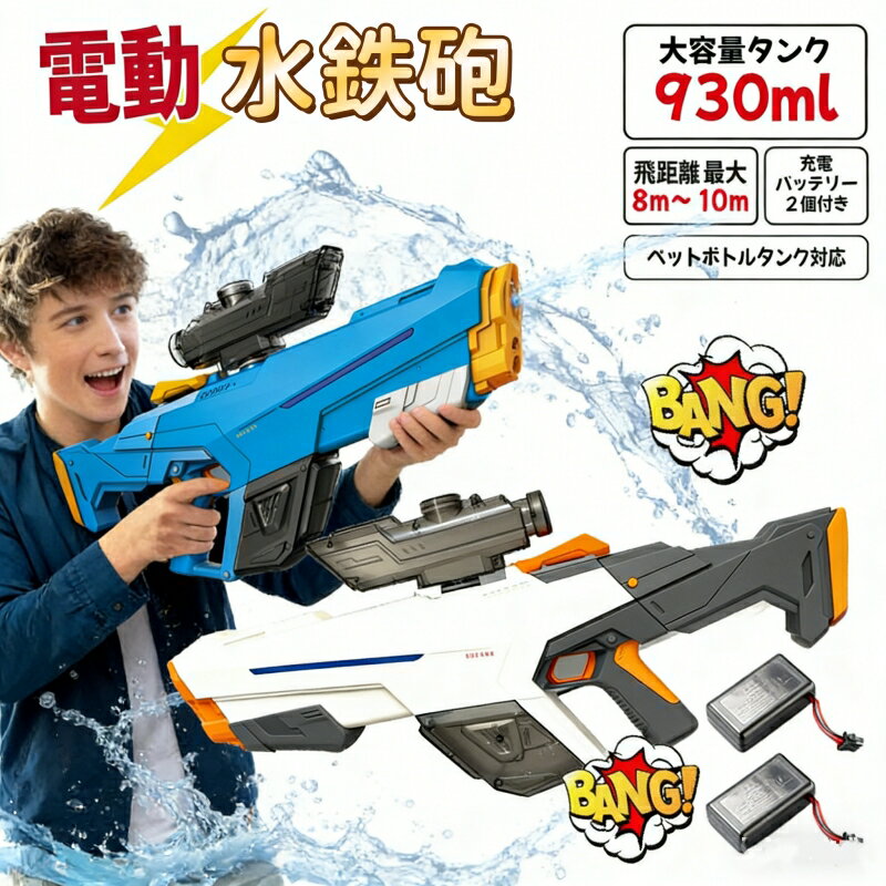 電動水鉄砲 電動ウォーターガン 自動連射 最大飛距離8-10m 大容量930mlタンク USB充電式 バッテリー搭載 強力ウォーターガン 水遊び 子供?大人対応 夏おもちゃ 予備用バッテリー付属 5,699 ~