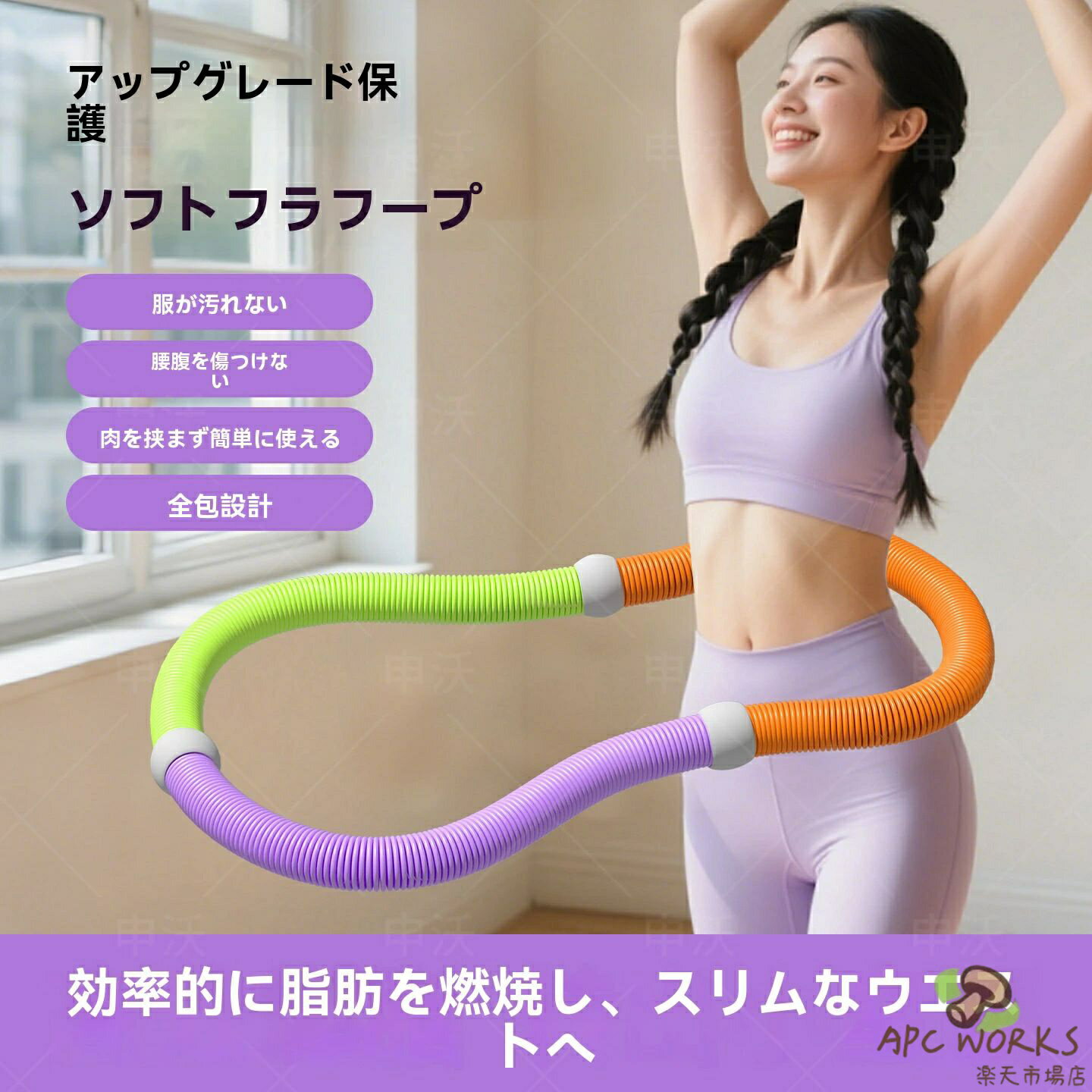 【商品番号】y750715 【ソフトフラフープ|肋骨への負担を軽減する優しいデザイン】 柔らかなニット素材のアウターとメモリーフォーム素材のインナーが腰に心地よくフィットし、従来の硬いフラフープにありがちな肋骨への痛みを軽減します。 合金製のスプリングコアが強力な反発力を発揮し、毎日10分のエクササイズを無理なく続けられます。 【おすすめ機能】 フルカバー&ソフト:肌に優しく、傷がつきにくい。 静かで信頼性が高い:柔らかい素材が衝撃音を軽減。 マンションなどでも快適に使用できます。 頑丈で耐久性が高い:多層構造と強化スプリングにより、破損しにくい構造を実現。 【ヒント】 頭を高く保ち、力強くフラフープを前に押し出します。 ふくらはぎ→骨盤→体幹の順に回転しながら、太ももが骨盤を引っ張っているのをイメージしてください。 鼻から息を吸い、口から息を吐きます。 体幹の筋肉に力を入れて姿勢を安定させましょう。 おすすめの使い方: 腹部の引き締め / ホームフィットネス / 産後軽めのエクササイズ / 背中と肩の若返り / 脚の引き締め 【構造・素材】 外層:ニット生地カバー(通気・肌ざわり) 中層:メモリーフォーム(衝撃吸収・体にフィット) 内芯:加重合金スプリング(反発強化) 材質:外層ニット生地、メモリーフォーム、合金製スプリング内蔵 重量:参考約1.49kg カラー:イエロー/ピンク/パープル 【使用上の注意】 人や物から離れた安全な場所でご使用ください。 最初は短期間使用してください。 痛みや不快感を感じた場合は使用を中止してください。 妊娠中または治療を受けている場合は、使用前に医師にご相談ください。