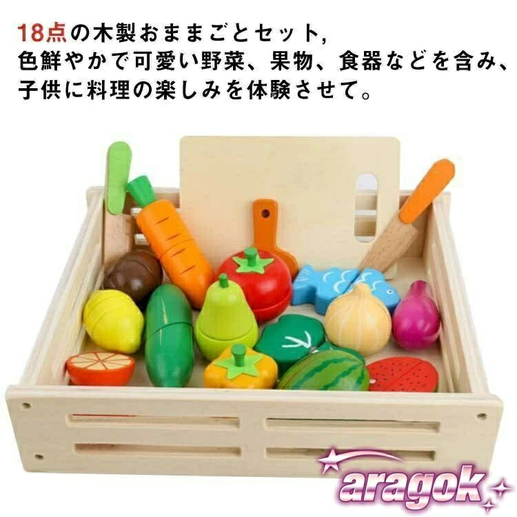 【全品2点で5%OFF】木製おままごとセット 18個セット 野菜果物セット 木製玩具 知育玩具 ごっこ遊び 切る遊び 食べ物おもちゃ 磁石式 磁石 マグネット 3,780 ~