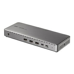 USB Type-Cケーブル1本の接続で3台のディスプレイに4K/60Hzの滑らかな映像が出力できるドッキングステーション。 「ドッキングステーション(HDMI/DisplayPort・4K×3画面出力対応)」■4K解像度かつ60Hzの滑らかな映像を、最大3画面同時に出力できる高性能ドッキングステーションです。 ■Windowsはもちろん、Mシリーズチップ搭載Macでも最大3画面の拡張表示が可能で、作業領域を大幅に拡張できます。 ■3台のモニターすべてをHDMIで接続できるため、手持ちのHDMIケーブルで簡単にセットアップできます。 ■最大10Gbpsの高速データ転送に対応したUSB CとUSB Aのハブポートを搭載し、大容量ファイルのやり取りもスムーズです。 ■2.5GBASE-Tに対応したLANポートを搭載し、最大2.5Gbpsの高速通信が可能です。 ※2.5GBASE-Tの環境で動作させるためには接続されるLANスイッチ、ケーブルなどのネットワーク環境が2.5GBASE-T(IEEE802.3bz)をサポートしている必要があります。 ■本体にはセキュリティースロット(3×7mm)を搭載しており、盗難防止対策も万全です。 ■USB PD対応のAC充電器を本製品に接続することで、本製品に接続したノートパソコンに安定して電源供給ができ長時間の作業でも安心です。 充電規格(ドッキングステーション)USB Power Delivery対応仕様1[対応OS]Windows 11/10macOS(Sequoia)15/(Sonoma)14/(Ventura)13[動作温度]0?40°C[動作湿度]5%?90% ※結露なきこと[セット内容]本体、USB Type-Cケーブル、取扱説明書(保証書)[ドライバ]要[全ポート数]10in1[サイズ]約W214×D83×H28mm仕様2[PC接続端子]コネクタ形状:USB Type-C対応規格:USB 10Gbps(USB3.2 Gen2/USB3.1 Gen2)準拠※USB 10GbpsはUSB-IF(USB Implementers Forum)によりUSB3.2 Gen2(USB3.1 Gen2)が名称変更されたもので同じ規格です。 USB PD最大出力:85Wケーブル長:100cmケーブルタイプ:ケーブル着脱仕様3[電源]電源供給方式:バスパワー/セルフパワー(電源接続時)本体消費電力:15WUSB PD入力ポート:ありUSB PD最大入力:100WUSB Type-Cケーブル1本の接続で3台のディスプレイに4K/60Hzの滑らかな映像が出力できるドッキングステーション。 「ドッキングステーション(HDMI/DisplayPort・4K×3画面出力対応)」 SANWA SUPPLY(サンワサプライ) [USB-C オス→メス HDMIx3 / DisplayPortx2 / LAN / 3.5mm / USB-Ax3 / USB-Cx2] USB PD対応 100W ドッキングステーション USB-CVDK20 [USB Power Delivery対応] USBCVDK20 35,510 ~