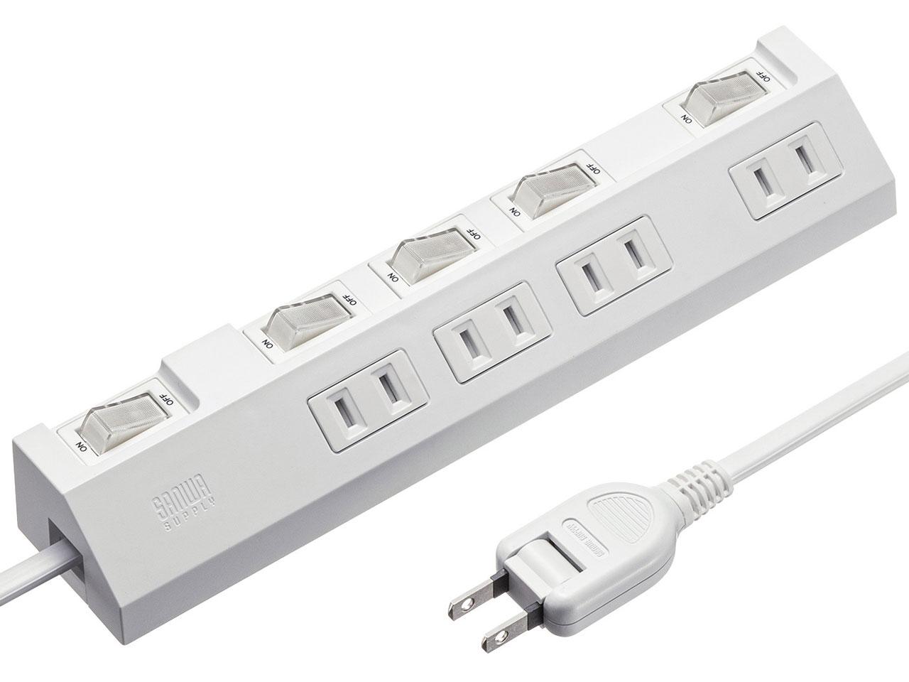 メーカー SANWASUPPLY サンワサプライ 商品カテゴリ PCアクセサリ・サプライ>電源タップ 発送目安 2日〜3日以内に発送予定(土日祝除) お支払方法 銀行振込・クレジットカード 送料 送料無料 特記事項 その他 [サンワサプライ][電源タップ]差込口が斜めで差込やすく、個別スイッチが付いた節電対策に役立つタップ。 ◆ 個別スイッチにより、機器ごとのON・OFFが可能な為、必要でない機器をこまめにOFFにすることで待機電力を減らし、節電や節約効果に役立ちます。 ホコリ防止シャッターを採用している為、使用しないコンセントへのホコリなどの侵入を防ぎ、火災などの事故予防にもなります。 1番端にある差込口は、間隔が52mm開けてある為、ACアダプタなども無理なく差込むことができます。 二重被覆コードを採用しており、より丈夫で安全なコードとなっております。 トラッキング防止予防に効果的な絶縁キャップ付きのスイング式プラグを採用しており、スッキリとした... SANWASUPPLY サンワサプライ 節電タップ(TAP-S29-2W) 3,307 ~