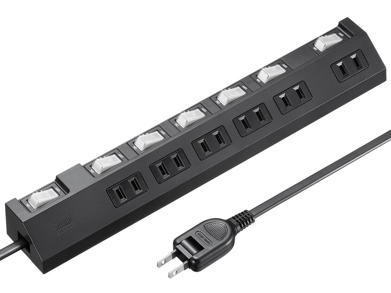 メーカー SANWASUPPLY サンワサプライ 商品カテゴリ PCアクセサリ・サプライ>電源タップ 発送目安 1日〜2日以内に発送予定(土日祝除) お支払方法 銀行振込・クレジットカード 送料 送料無料 特記事項 その他 [サンワサプライ][電源タップ]差込口が斜めで差込やすく、個別スイッチが付いた節電対策に役立つタップ。 ◆ 個別スイッチにより、機器ごとのON・OFFが可能な為、必要でない機器をこまめにOFFにすることで待機電力を減らし、節電や節約効果に役立ちます。 ホコリ防止シャッターを採用している為、使用しないコンセントへのホコリなどの侵入を防ぎ、火災などの事故予防にもなります。 1番端にある差込口は、間隔が52mm開けてある為、ACアダプタなども無理なく差込むことができます。 二重被覆コードを採用しており、より丈夫で安全なコードとなっております。 トラッキング防止予防に効果的な絶縁キャップ付きのスイング式プラグを採用しており、スッキリとした... SANWASUPPLY サンワサプライ 節電タップ(TAP-S29-2BK) 3,695 ~