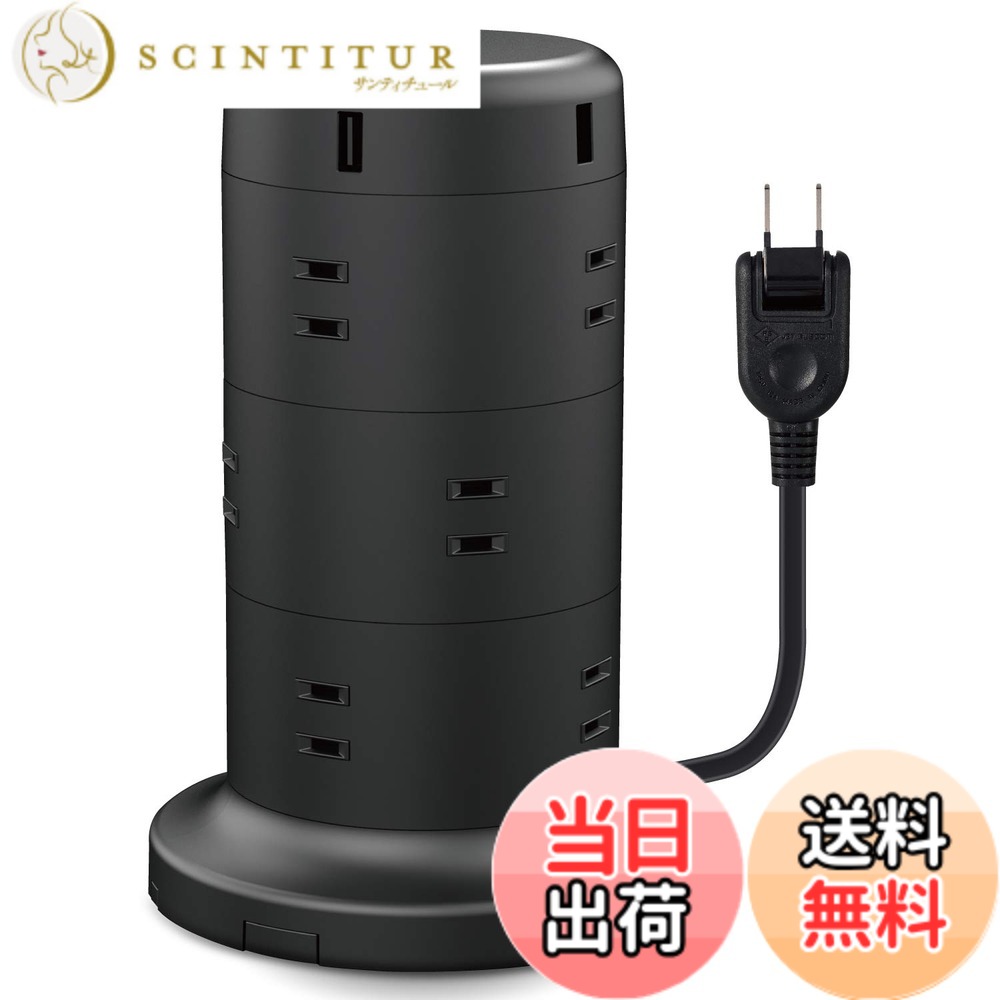 【送料無料】エレコム 電源タップ タワー型 延長コード [ 12個口 & USBx5ポート ] 固定パーツ付 雷ガード ほこりシャッター 2m ブラック ECT-0720BK 7,631 ~