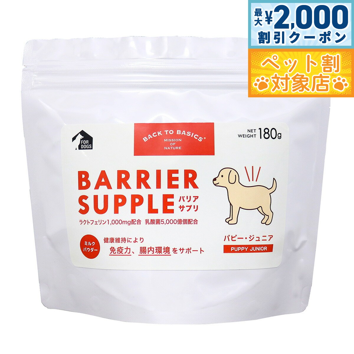 【最大2000円OFFクーポン!&店内ポイント最大62倍!本日限定!】バリアサプリ ドッグ パピー ジュニア 180g 犬 サプリメント 無添加 国産 乳酸菌 全年齢用 オールブリード 4,015 ~