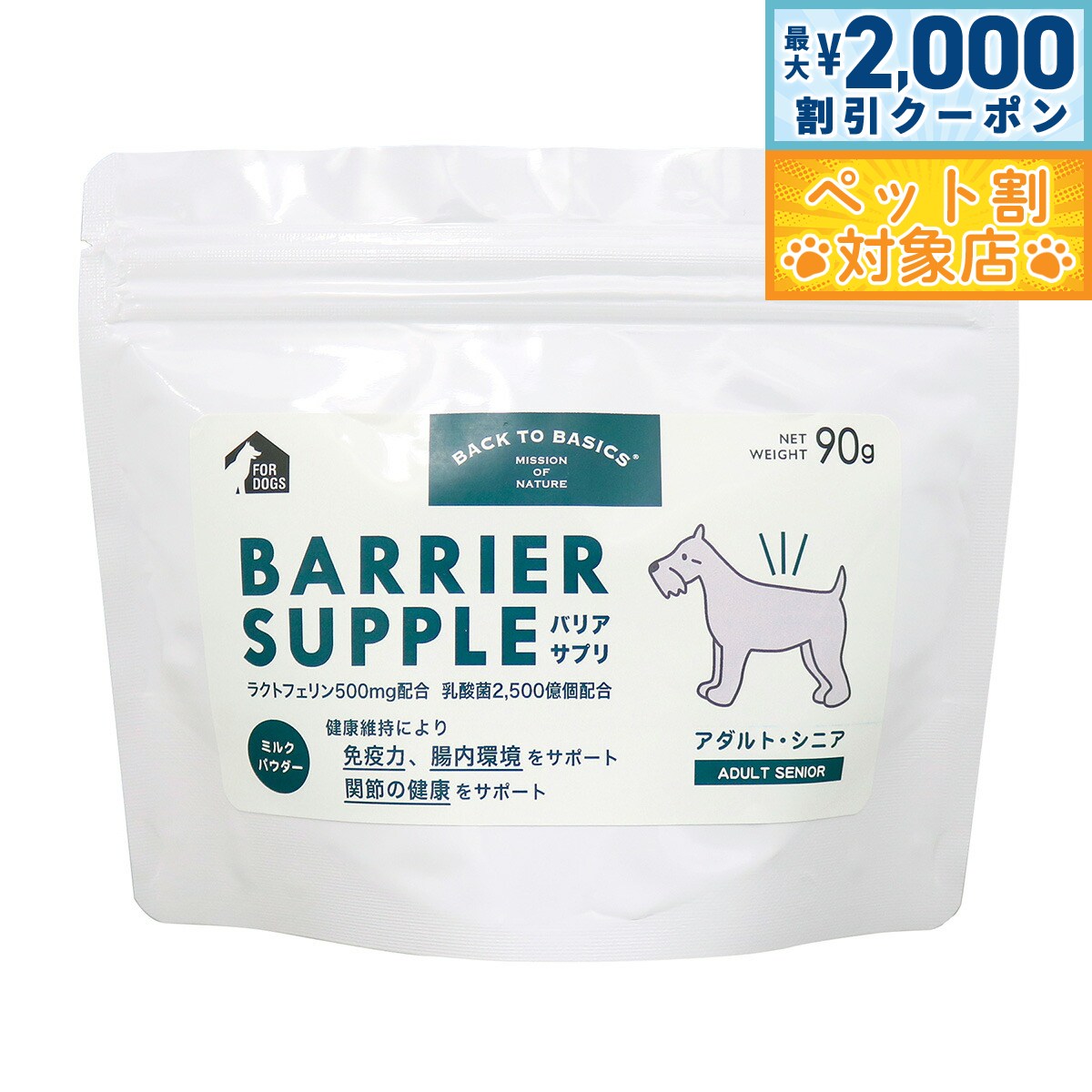【最大2000円OFFクーポン!&店内ポイント最大62倍!本日限定!】バリアサプリ ドッグ アダルト シニア 90g 犬 サプリメント 無添加 国産 乳酸菌 グルコサミン コンドロイチン ヒアルロン酸 全年齢用 オールブリード 2,750 ~