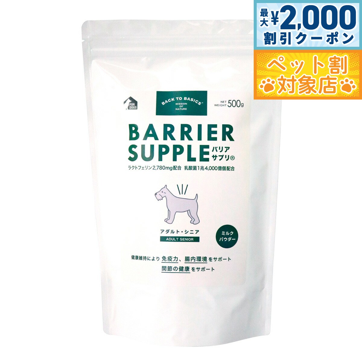 【最大2000円OFFクーポン!&店内ポイント最大62倍!本日限定!】バリアサプリ ドッグ アダルト シニア 500g 犬 サプリメント 無添加 国産 乳酸菌 グルコサミン コンドロイチン ヒアルロン酸 全年齢用 オールブリード 9,020 ~