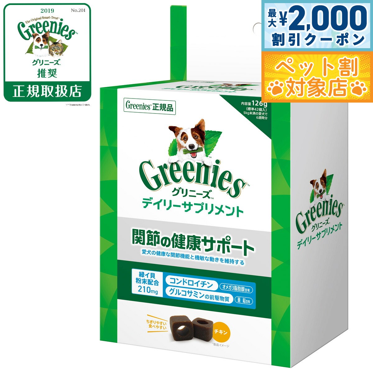 【最大2000円OFFクーポン!&店内ポイント最大62倍!本日限定!】グリニーズ デイリーサプリメント 関節の健康サポート 126g チキン味 成犬用 無添加 2,459 ~