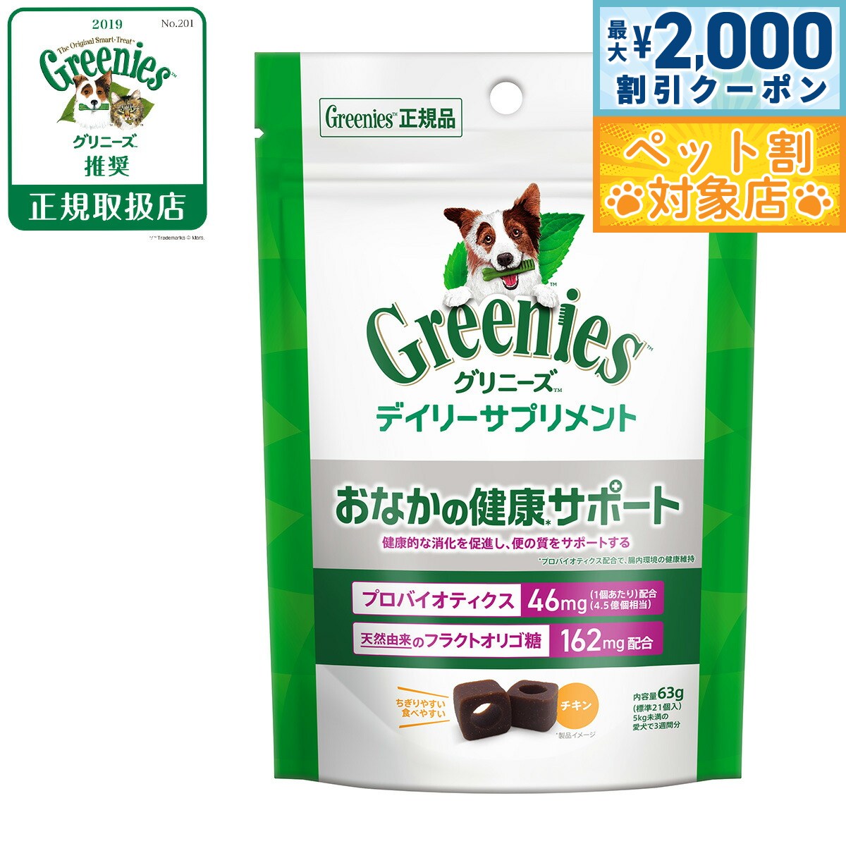 【最大2000円OFFクーポン!&店内ポイント最大62倍!本日限定!】グリニーズ デイリーサプリメント おなかの健康サポート 63g チキン味 成犬用 無添加 1,466 ~