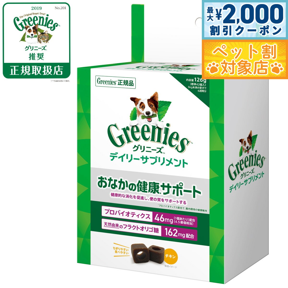 【最大2000円OFFクーポン!&店内ポイント最大62倍!本日限定!】グリニーズ デイリーサプリメント おなかの健康サポート 126g チキン味 成犬用 無添加 2,459 ~