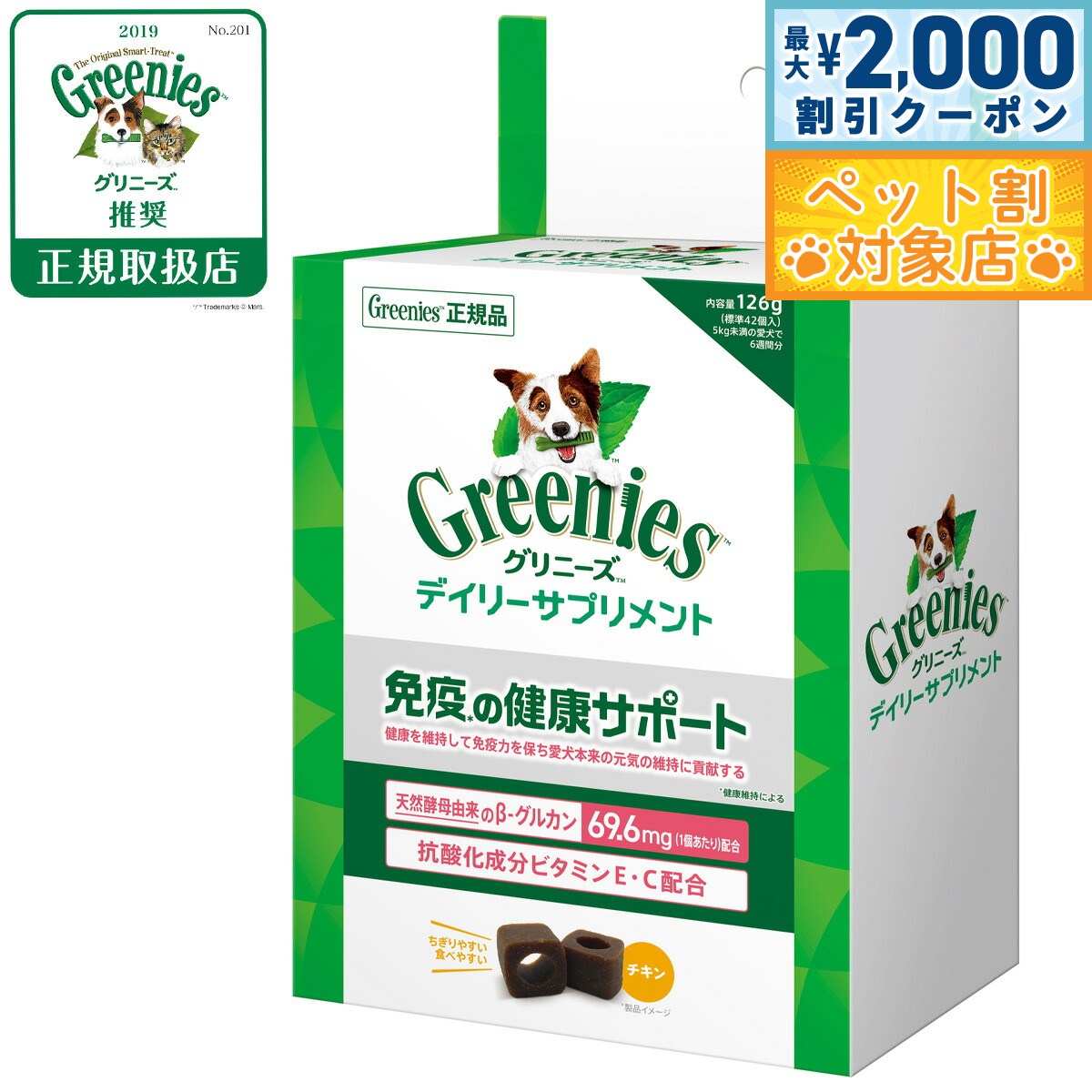 【最大2000円OFFクーポン!&店内ポイント最大62倍!本日限定!】グリニーズ デイリーサプリメント 免疫の健康サポート 126g チキン味 成犬用 無添加 2,838 ~