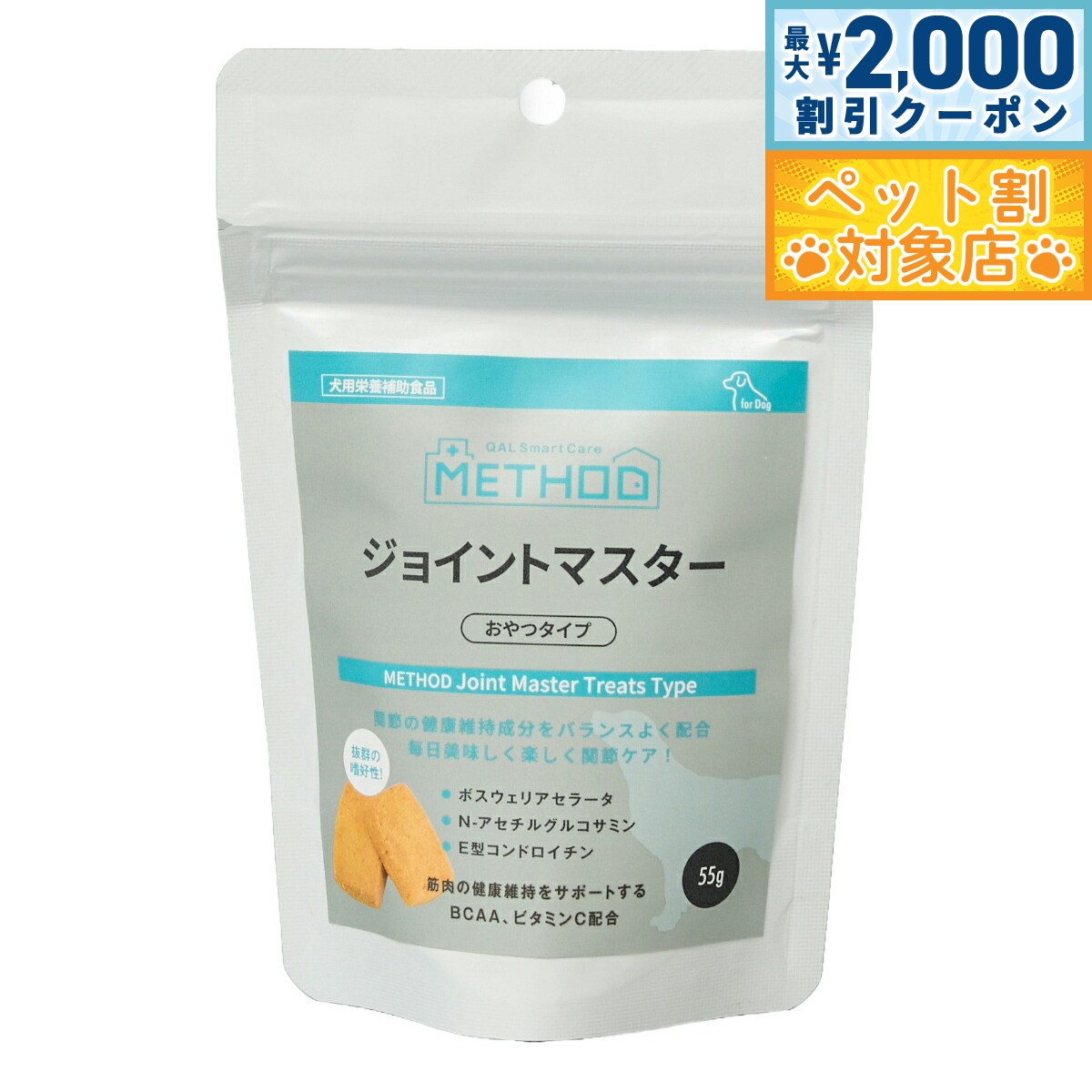 ボスウェリアセラータ、N-アセチルグルコサミン、E型コンドロイチン、筋肉の健康維持をサポートするBCAA、ビタミンC新配合抜群の嗜好性!犬用栄養補助食品商品名METHOD サプリメント ジョイントマスター おやつタイプブランドQIX原材料小麦粉、グラニュー糖、マーガリン、全卵、N-アセチルグルコサミン、ビタミンC、イカ軟骨抽出物末(コンドロイチン含有)、L-ロイシン、ボスウェリアセラータ樹脂抽出物末、L-バリン、L-イソロイシン使用期限製造から1年半カロリー425kcal以上/100g生産国日本 毎日のケアが、ペットの健康をつくります。 METHODが目指すのは、シンプルなのにうちの子に合ったケア。 エビデンスに基づいたケア。 愛情にあふれ、ペットとの最高の関係をつくり、大切な時間をもっと長くするためのケアで、日本の動物病院の半数以上が採用している確かな品質で、家族と動物病院を結びます。 科学的根拠や実証データに基づき、人や動物での機能や安全性が認められた成分を厳選して製品開発をおこなっています。 国内製造にこだわり、製法はシンプルに、原料は由来まで追求する、ペットと飼い主が安心して続けられる製品を作り続けています。 関節の健康維持成分をバランスよく配合。 毎日美味しく楽しく関節ケア!ボスウェリアセラータ、N-アセチルグルコサミン、E型コンドロイチン、筋肉の健康維持をサポートするBCAA、ビタミンC新配合。 抜群の嗜好性!バランスの取れた関節3成分に筋肉の健康維持成分を新配合・BCAA配合:体の中では主に筋肉や血液中に含まれ、筋肉の健康を維持するのに重要な栄養成分・ビタミンC配合:関節の健康維持に重要な働きをしています。 ・ボスウェリアセラータ:インドなどに自生するカンラン科ボスウェリア属の植物でボスウェリア酸が含まれている天然の成分・E型コンドロイチン:従来のサメやブタ由来とは異なるイカ由来のコンドロイチン・N-アセチルグルコサミン:グルコサミンの体内変換型で、グルコサミンの約3倍の利用率1日あたりの給与量:犬の体重5kgあたり2枚を目安に、1〜数回に分けて与えてください。 毎日継続して与えていただくことをお勧めします。 使用上の注意:給与中の健康状態に異常が見られた場合は、ただちに給与を中止してください。 生後3ヶ月未満、妊娠・授乳期の犬には与えないでください。 品質保持の為、脱酸素剤を封入しておりますが食べられません。 保存及び取扱いの注意:本製品は、犬専用です。 高温多湿・直射日光を避けて保管してください。 小児の手の届かないところに保管してください。 賞味期限の過ぎた製品は与えないでください。 開封後は開封口を必ず閉じて冷暗所で保管し、なるべく早めにご使用ください。 主成分:2枚中、イカ軟骨抽出物末(コンドロイチン含有)2.4mg、ボスウェリアセラータ樹脂抽出物末 1.2mg、N-アセチルグルコサミン 8mg、BCAA(L-バリン0.87mg、L-ロイシン1.63mg、L-イソロイシン0.87mg)、ビタミンC 5.58mg保証分析値:粗たん白質 6.9%以上、粗脂肪 22.9%以上、粗繊維 0.1%未満、粗灰分 1.0%以下、水分 10.0%以下対象ペット:犬メーカー名株式会社 QIXMETHOD サプリメント ジョイントマスター おやつタイプボスウェリアセラータ、N-アセチルグルコサミン、E型コンドロイチン、筋肉の健康維持をサポートするBCAA、ビタミンC新配合抜群の嗜好性!犬用栄養補助食品 【最大2000円OFFクーポン!&店内ポイント最大58倍!本日限定!】メソッド METHOD サプリメント ジョイントマスター おやつタイプ 55g 関節 1,078 ~