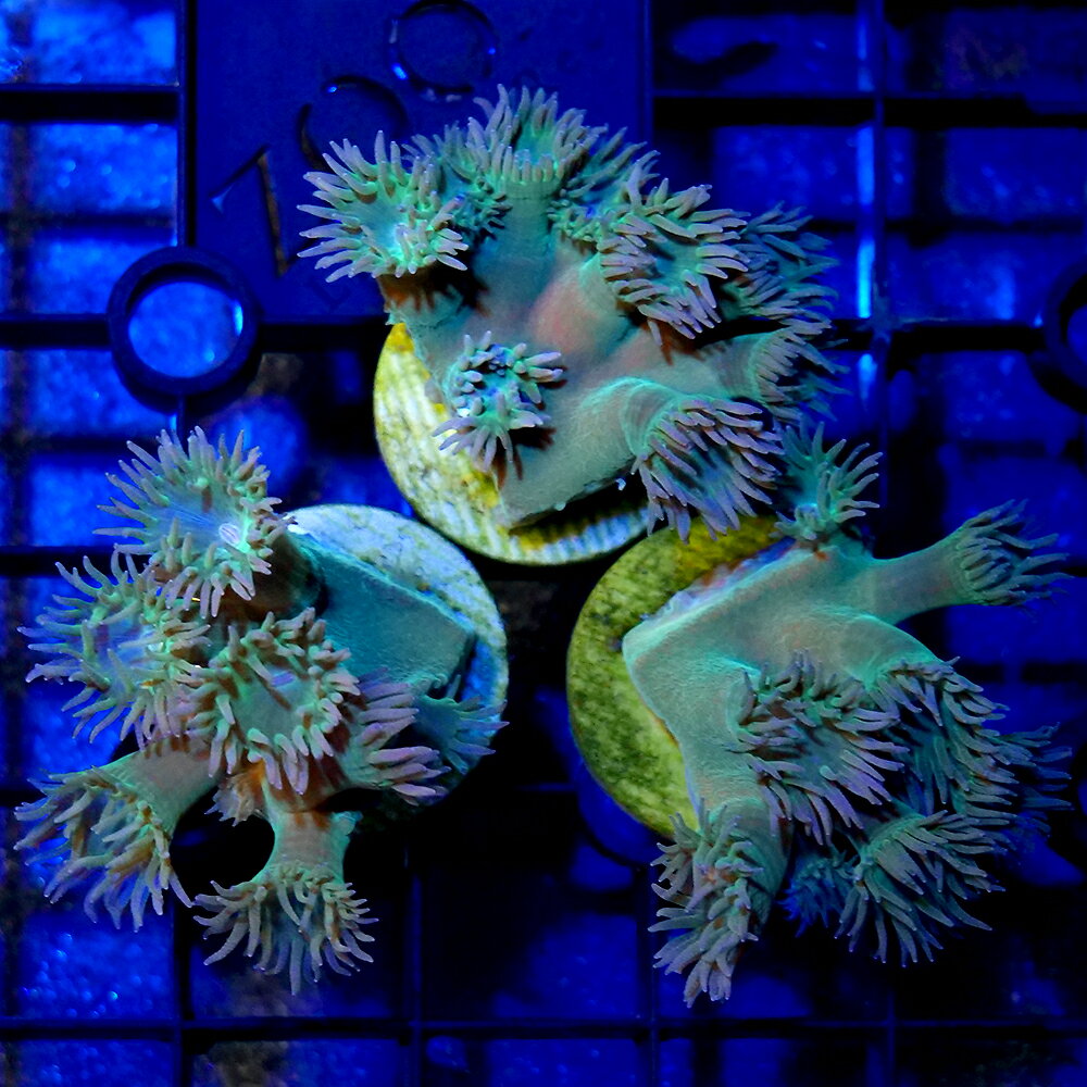 ※お送りする個体は幅約2cm程度のポリカプラグに接着した物になります。 ※こちらは人工的に切断、接着した物となります、予めご了承下さい。 ※輸送の際に外れることがありますので予めご了承ください。 ※形状、模様、色、サイズ等の指定についてはお受け致しかねます。 丈夫で水槽内でもよく増える! バブルディスクコーラル グリーンレッド ポリカプラグ付き 販売名バブルディスクコーラル学名(※)Discosoma sp.(※)…改良品種や学名が不明の種は流通名での記載の場合があります。 別名イソギンチャクモドキ分布太平洋〜インド洋飼育要件温度 → 24度前後 照明 → 中(60cm水槽で蛍光灯1本程度) 水流 → 弱〜中(ポリプがたなびく程度) 餌 → 与えれば食べる(液体フード/クリル等の小片を週1回程度) 水質 → 通常ろ過で可 ※…飼育環境は一例です。 必ずしもこの環境下であれば飼育できることを確約するものではございません。 種類詳細イソギンチャクに近いソフトコーラルの仲間で、通常のディスクコーラルとは異なり触手の先端が膨らむのが特徴です。 カラーもブルー、レッド、グリーンのほか色が混じったマーブル、ストライプなど多彩なバリエーションがありコレクション性の高いサンゴです。 飼育に関しては光、水流、水質などは最低限の環境で飼育が可能なので初心者にもおすすめと言えますが、色揚げなど状態良く飼育するにはライトの色や硝酸塩の蓄積などに気を配ってあげる必要があります。 給餌に関しては光合成に依存している率が高いので基本的には不要ですが与える場合は月に2〜3回、ふやかしたクリルを与える程度で十分です。 また他のサンゴと比べると毒性はやや強いので他の種類とレイアウトする際は近すぎないように配置しましょう。 注意事項※お送りする個体は約2cm程度のポリカプラグに接着した物となります。 ※こちらは人工的に土台へ接着した物となります。 ※輸送の際に外れることがありますので予めご了承ください。 ※形状、模様、色、サイズ等の指定についてはお受け致しかねます。 【撮影環境について】サンゴ等の写真については、メイン照明はGrassyWing Marine補助ランプとしてブルー系のLEDライトを使用しています。 サンゴの種類によっては、ブルー系のLEDライトのみを使用しオレンジ系のカラーフィルターを使用している場合もございます。 お客様の環境によっては、サンゴの色合いが画像と大きく異なることがありますのでご了承ください。 コーラルフラグプラグ サンドコーティング Mサイズ(φ20mm) 10本入りコーラルフラグプラグ サンドコーティング Lサイズ(φ30mm) 10本入り … ◎ kaisui73 海水 サンゴ ソフトコーラル バブルディスクコーラル m_softcoral b_coral ディスク イソギンチャクモドキ プラフラグ プラプラグ ポリカプラグ プラグ フラグ おまかせ 20250216 y25m02 OK sangonohi1ten■この商品をお買い上げのお客様は、下記商品もお買い上げです。 ※この商品には付属しません。 ■コーラルフラグプラグ サンドコーティング Mサイズ(φ20mm) 10本入りコーラルフラグプラグ サンドコーティング Lサイズ(φ30mm) 10本入り (サンゴ)フラグサンゴ バブルディスクコーラル グリーンレッド Mサイズポリカプラグ付き(1個)wh‐88 北海道・九州航空便要保温 4,860 ~