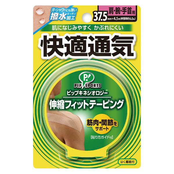 ◆商品名:【2個セット】プロ・フィッツ キネシオロジーテープ 快適通気 肩・腕・手首用 4.5m内容:幅37.5mm×4.5m(伸長時約6.0m)×2ムレにくい 貼り方QRコード付 汗・シャワーにも強い撥水加工 ケガの予防・疲労軽減サポート はく離紙付 ■通気性のある快適素材で、お肌にやさしい。 ■伸縮性にすぐれ、筋肉・関節にフィット。 ■低刺激粘着剤使用。