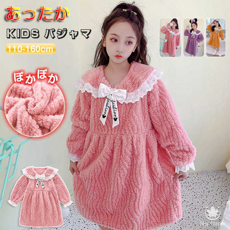 子供服ナイトガウンルームウェアパジャマ女の子バスローブキッズ長袖寝巻きフード付き可愛い秋冬着る毛布もこもこ部屋着寒さ対策ワンピースパジャマあったかロングガウン