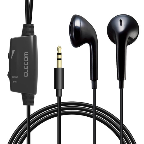 【即納】エレコムテレビ用イヤホンモノラルカナル型3.5mmミニプラグ音量コントローラー3mブラック