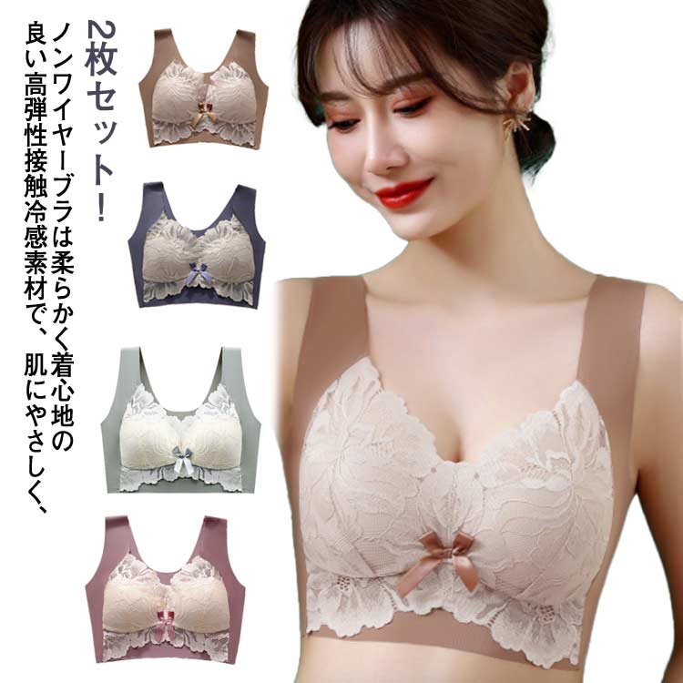 夏用ブラジャー2枚セットシームレスノンワイヤーブラレディースインナー下着ナイトブラ吸汗速乾通気性メッシュ透け感ストレッチシースルー涼しいひんやり接触冷感柔らかい快適カップ育乳