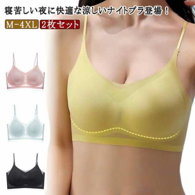 2枚セットブラジャーノンワイヤー極薄接触冷感楽ちん着痩せシームレス胸を小さく見えるおやすみブラ無縫製蒸れないホックなしスポーツブラブラトップキャミソールメッシュカップ付きナイトブラ薄いマタニティ育乳授乳送料無料