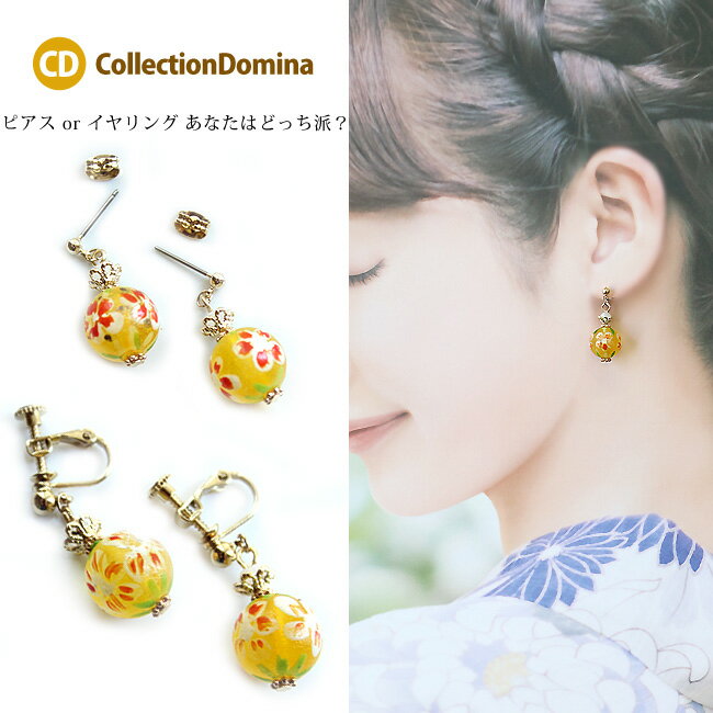 ピアスイヤリングとんぼ玉トンボ玉蜻蛉玉ガラス玉ぶらさがり揺れるかわいいお洒落上品ゆらゆら揺れる大ぶりピアスイヤリングかわいいおしゃれ人気和柄風鈴浴衣着物挟むだけ黄イエローゴールドレディースアクセサリーネジバネ式ハンドメイド