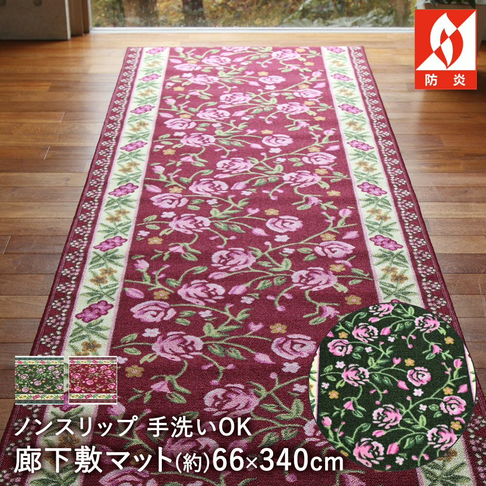 アウトレットカーペット廊下敷マット66×340cm防炎ノンスリップ洗濯OKピュアローズ大一商事|廊下敷廊下敷きカーペット廊下マット廊下絨毯廊下敷き廊下用廊下敷カーペット滑り止めラグマット花柄バラ薔薇絨毯じゅうたん長いマットロング洗濯