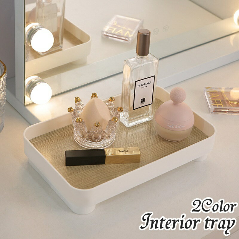送料無料インテリアトレイアクセサリートレイ脚付き小物入れトレー卓上スクエア四角形長方形木目調収納整理おしゃれシンプルホワイト白
